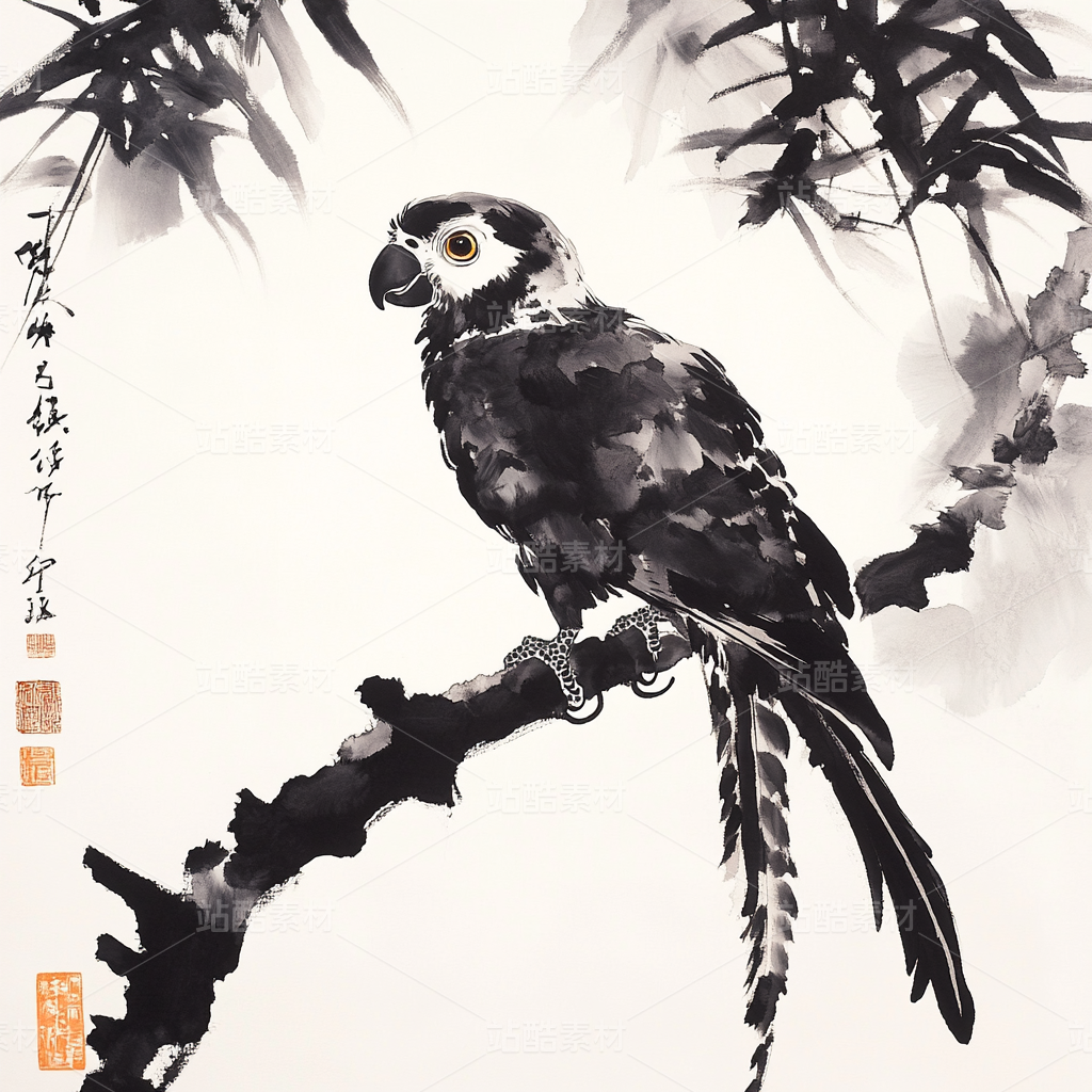 新中式花鸟画水墨花鸟古风画插画花鸟装饰画工笔花鸟