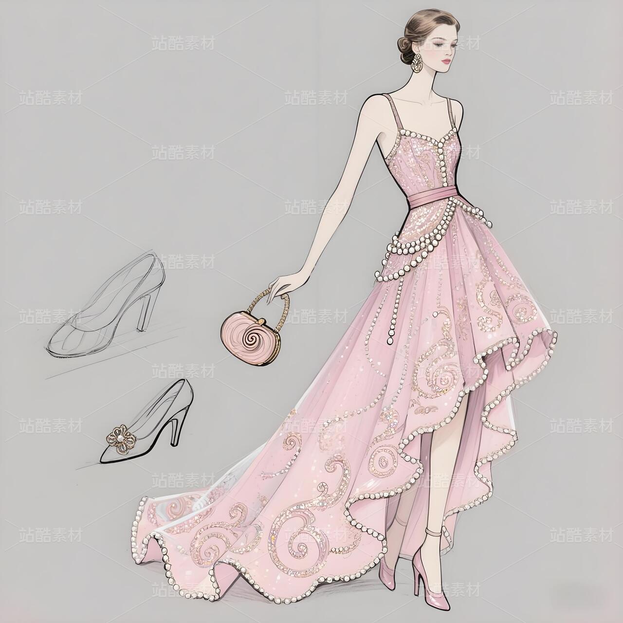 这幅欧洲洛可可卷草纹样高定礼服设计手稿,是一封写给过去的优雅情书,更是一份面向未来的华丽宣言。它将凡尔赛宫廷的余韵、匠心的璀璨光辉与对生命之美的执着追求,编织进每一根线条、每一片卷叶、每一缕珠光之中。它证明,洛可可的灵魂从未真正沉睡,它只是在时光的长河中流淌、蜕变,最终在当代高定的圣殿里,找到了重新绽放的土壤与光芒。这曲由曲线、自然与奢华共同谱写的华章,必将持续回响。