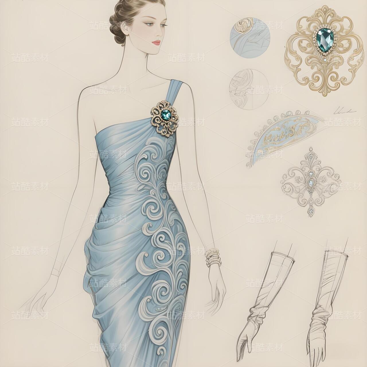 这幅欧洲洛可可卷草纹样高定礼服设计手稿,是一封写给过去的优雅情书,更是一份面向未来的华丽宣言。它将凡尔赛宫廷的余韵、匠心的璀璨光辉与对生命之美的执着追求,编织进每一根线条、每一片卷叶、每一缕珠光之中。它证明,洛可可的灵魂从未真正沉睡,它只是在时光的长河中流淌、蜕变,最终在当代高定的圣殿里,找到了重新绽放的土壤与光芒。这曲由曲线、自然与奢华共同谱写的华章,必将持续回响。