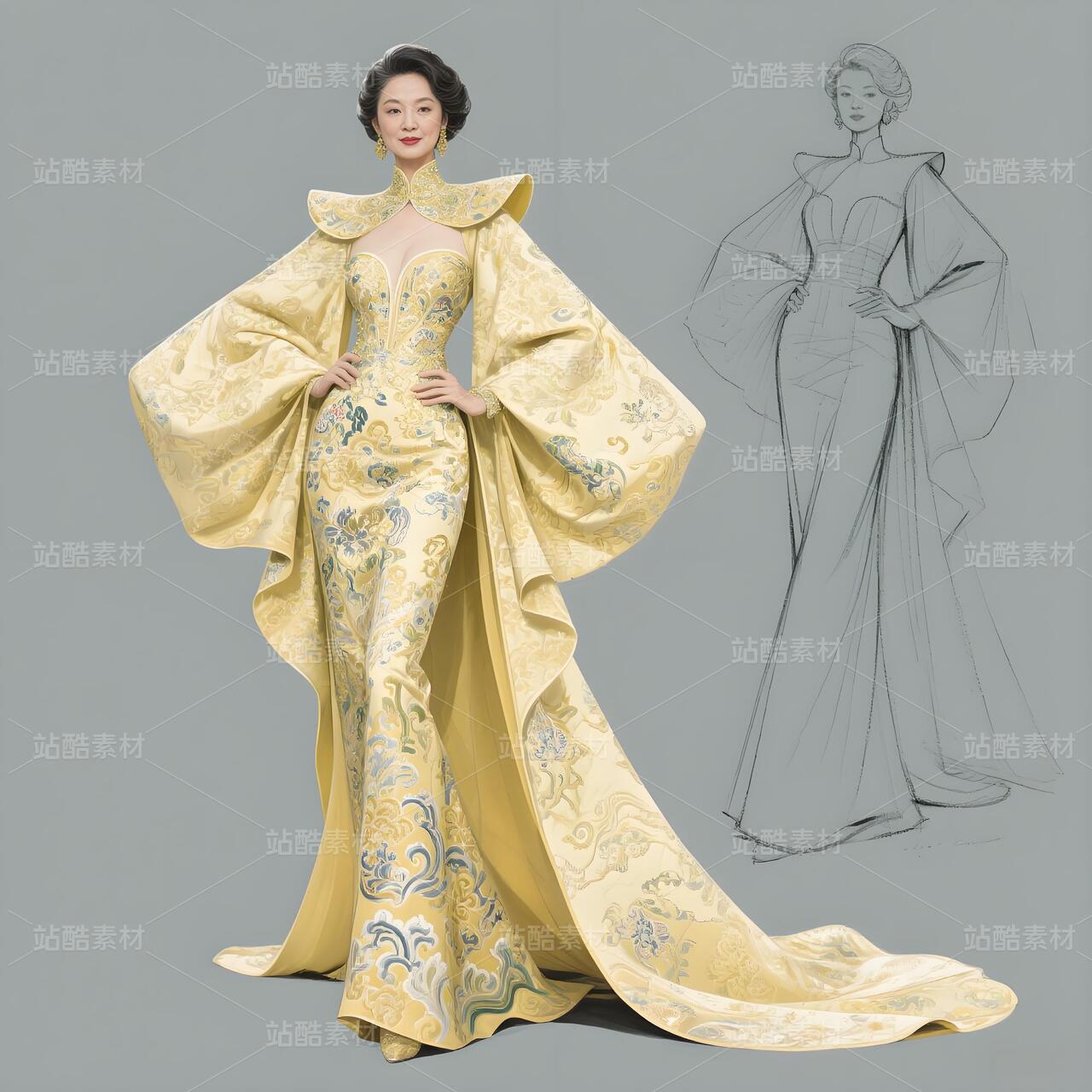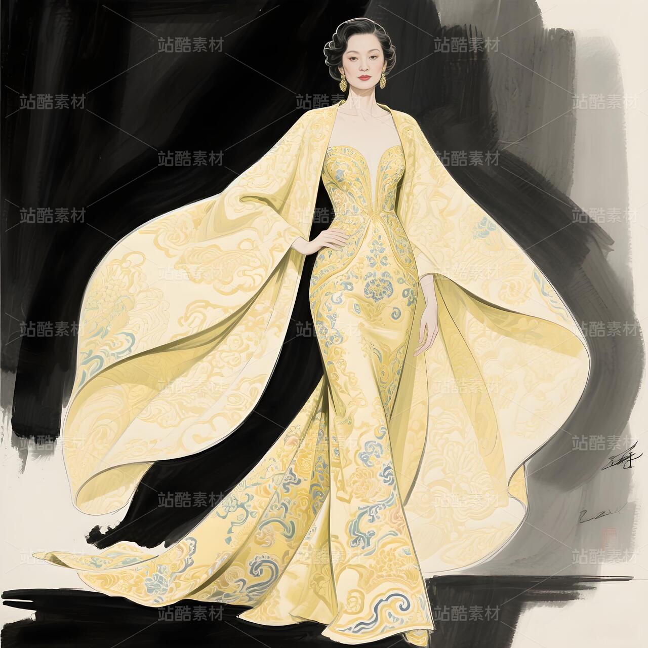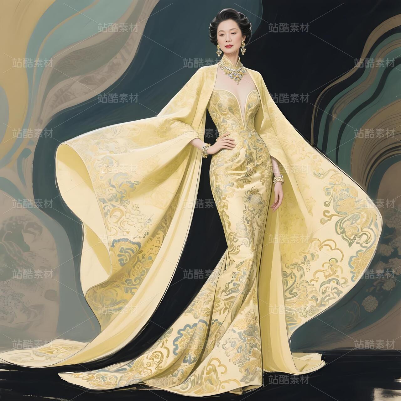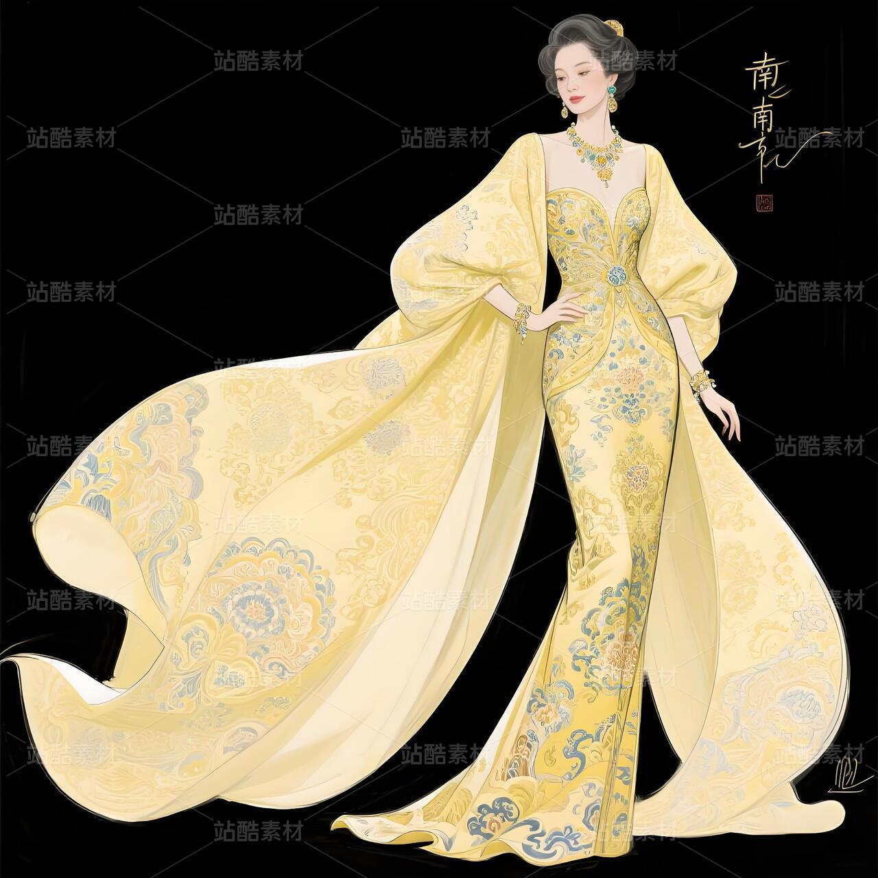 以解构南京云锦的辉煌纹样为刃,剖开高定晚礼服的华美表象,打造一件名为「历史负重者」的抽象宣言。淡黄云锦非为优雅,而是文明褪色的隐喻。