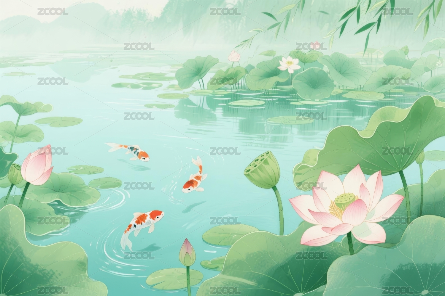 荷花池清新风园林场景