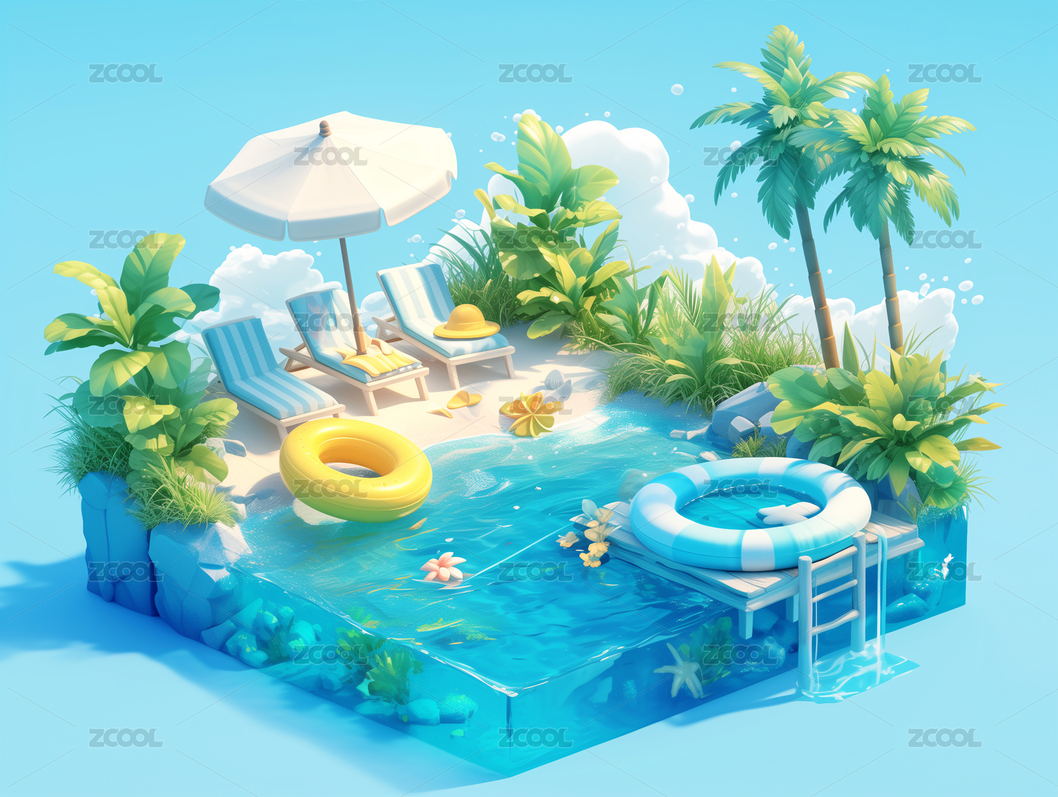 游泳池3D立夏节气假期旅行游泳避暑背景
