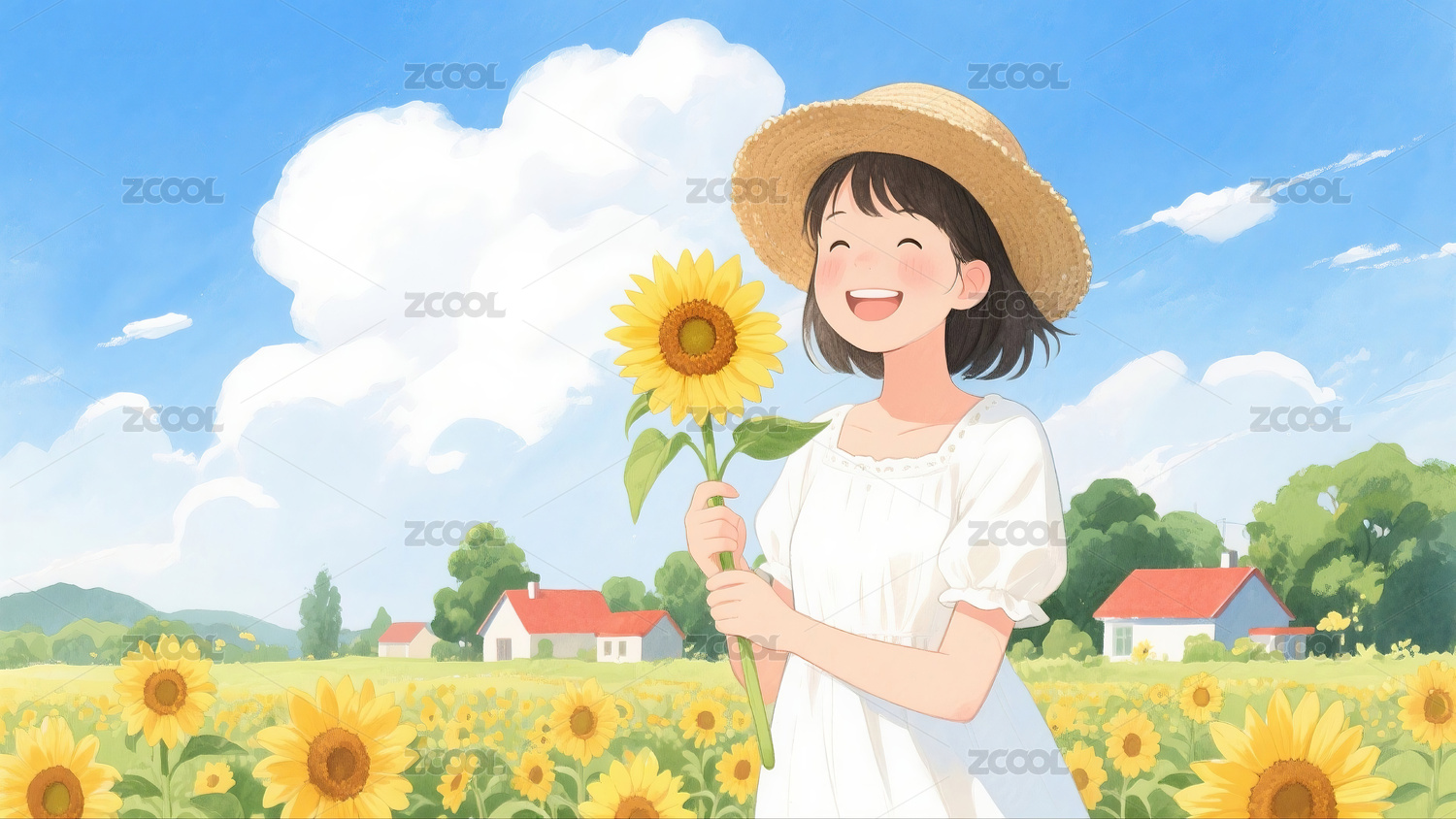 拿着向日葵的女孩