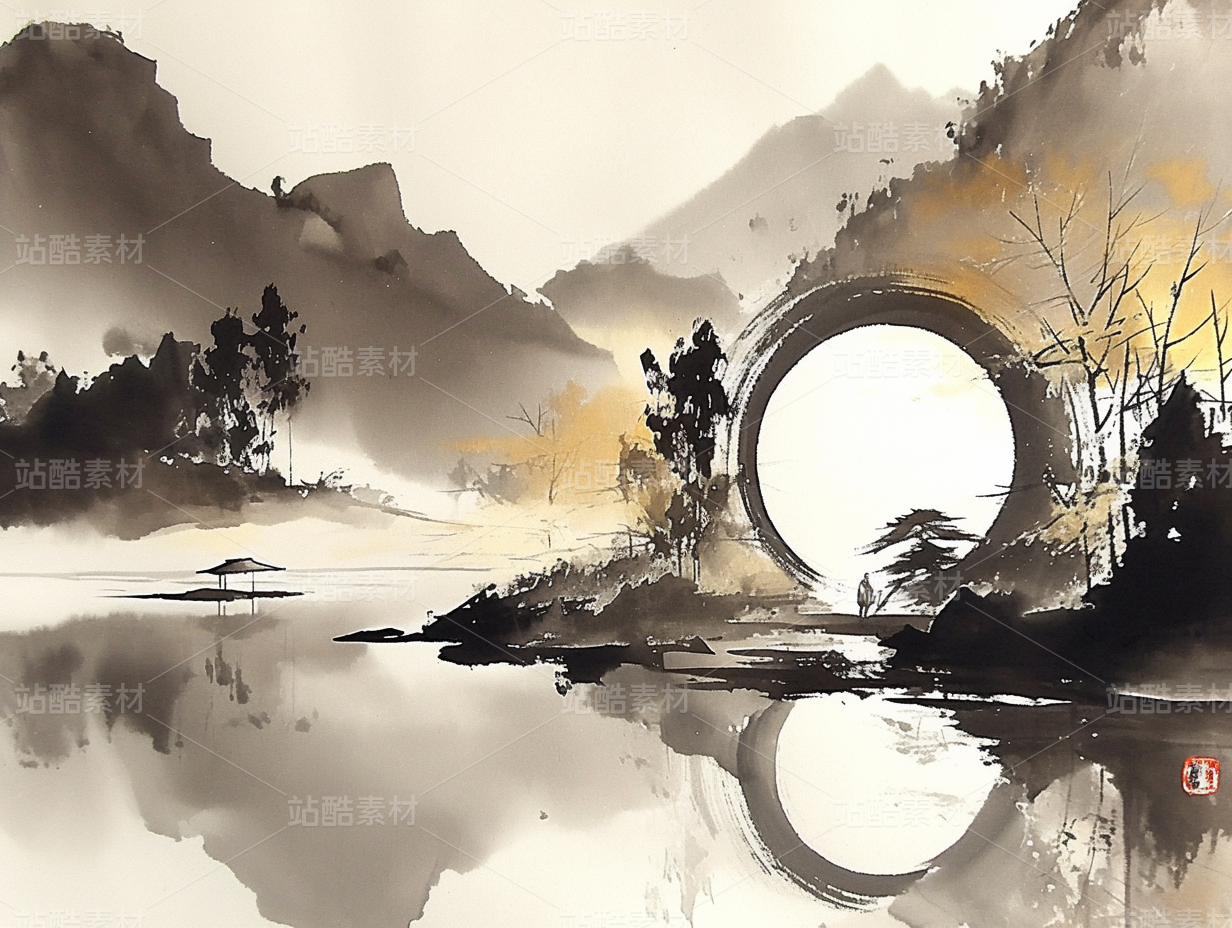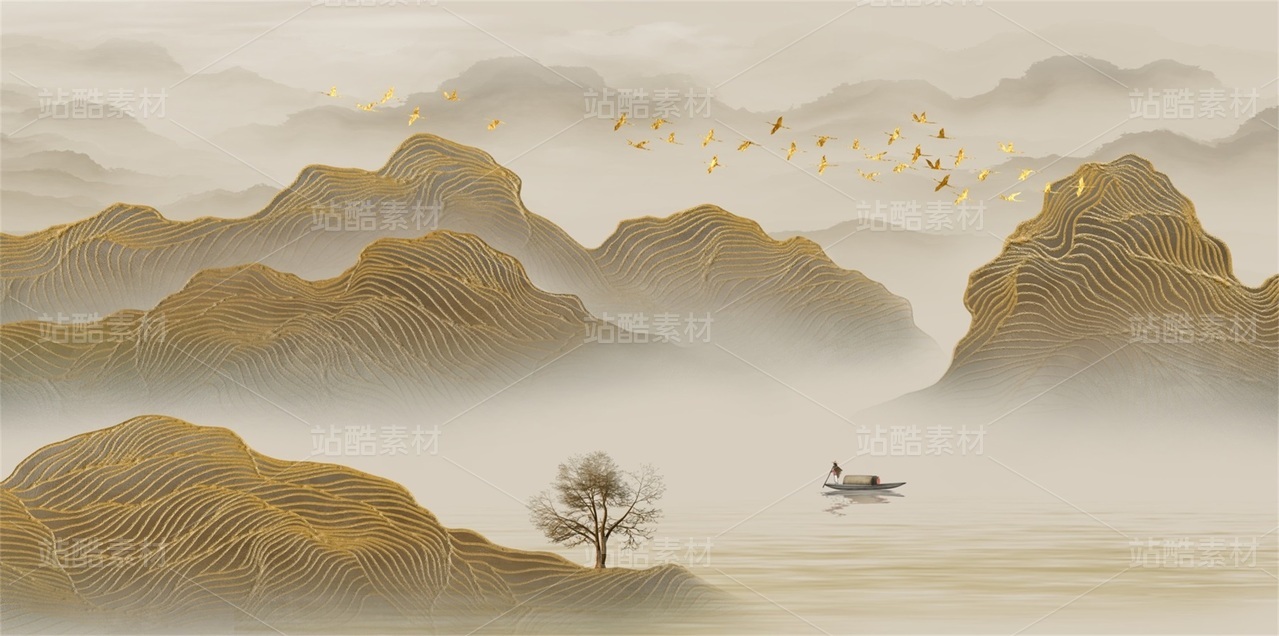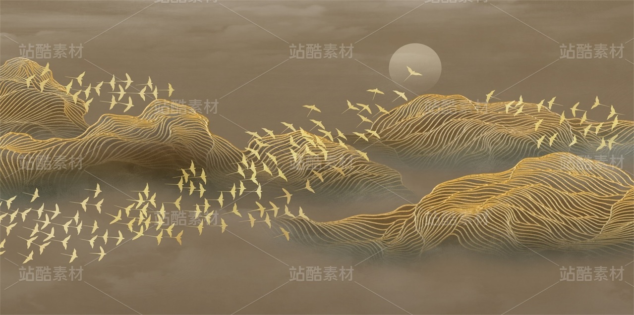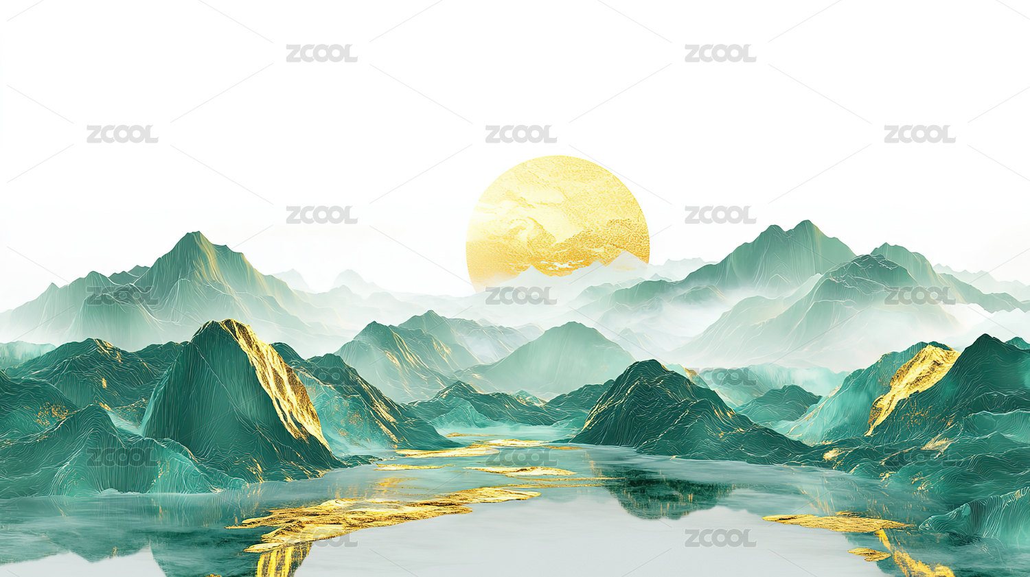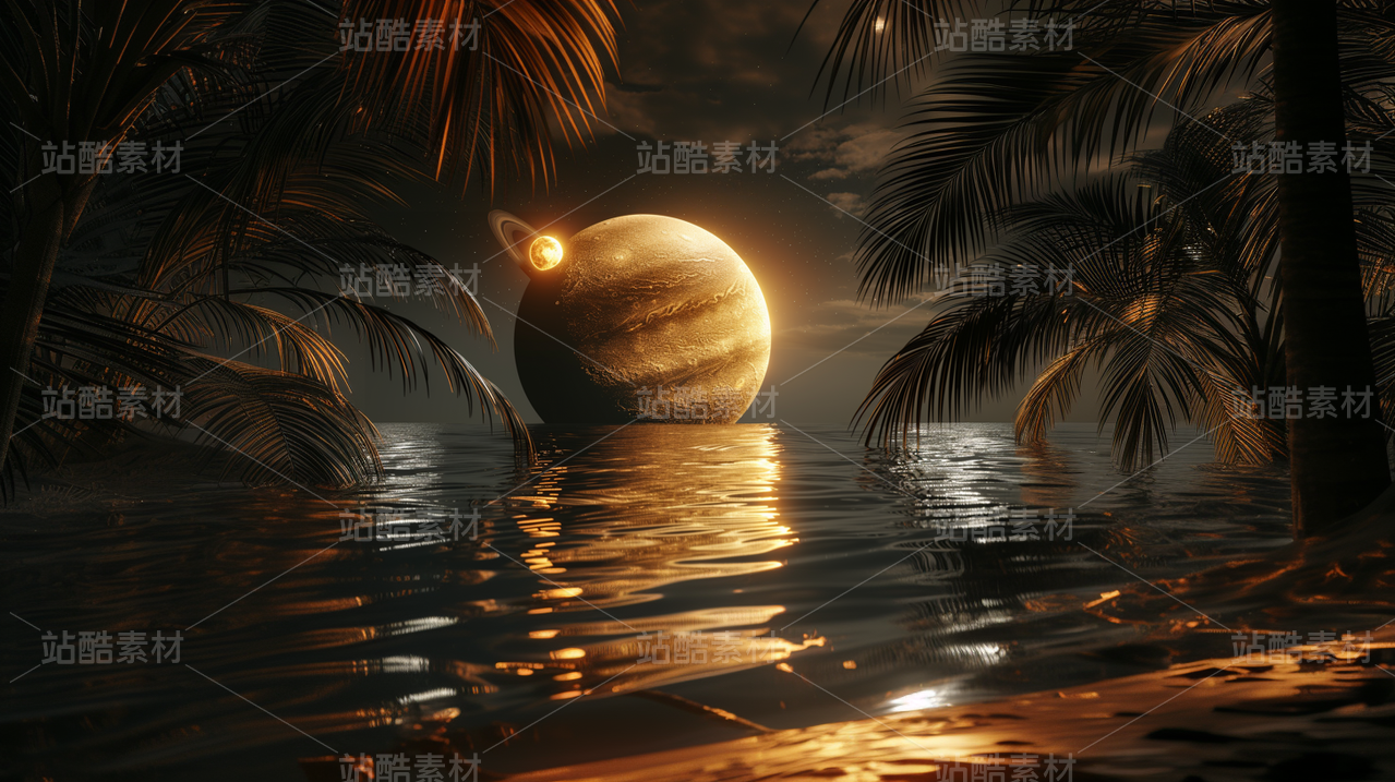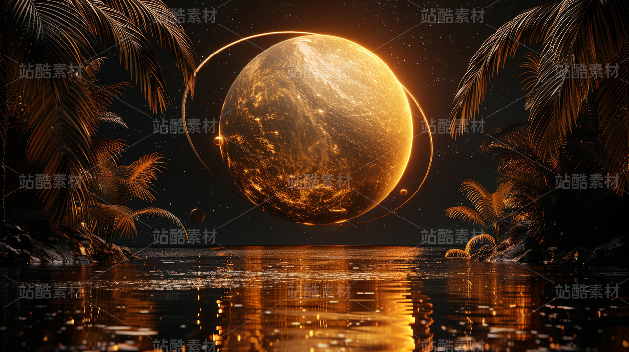 金色绿色黑色自然海边夕阳星球未来高端高级感