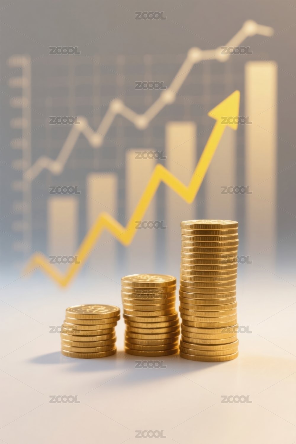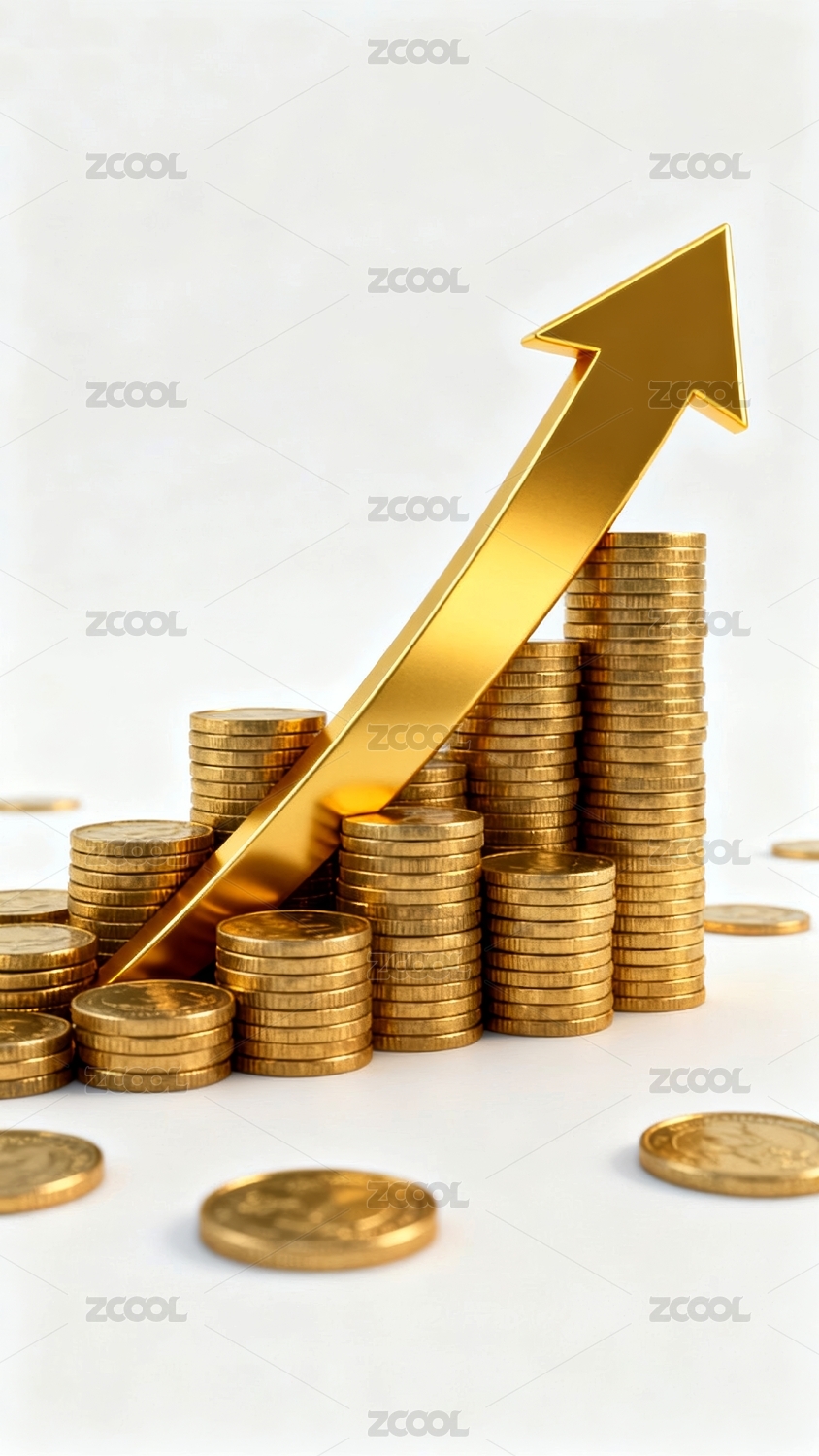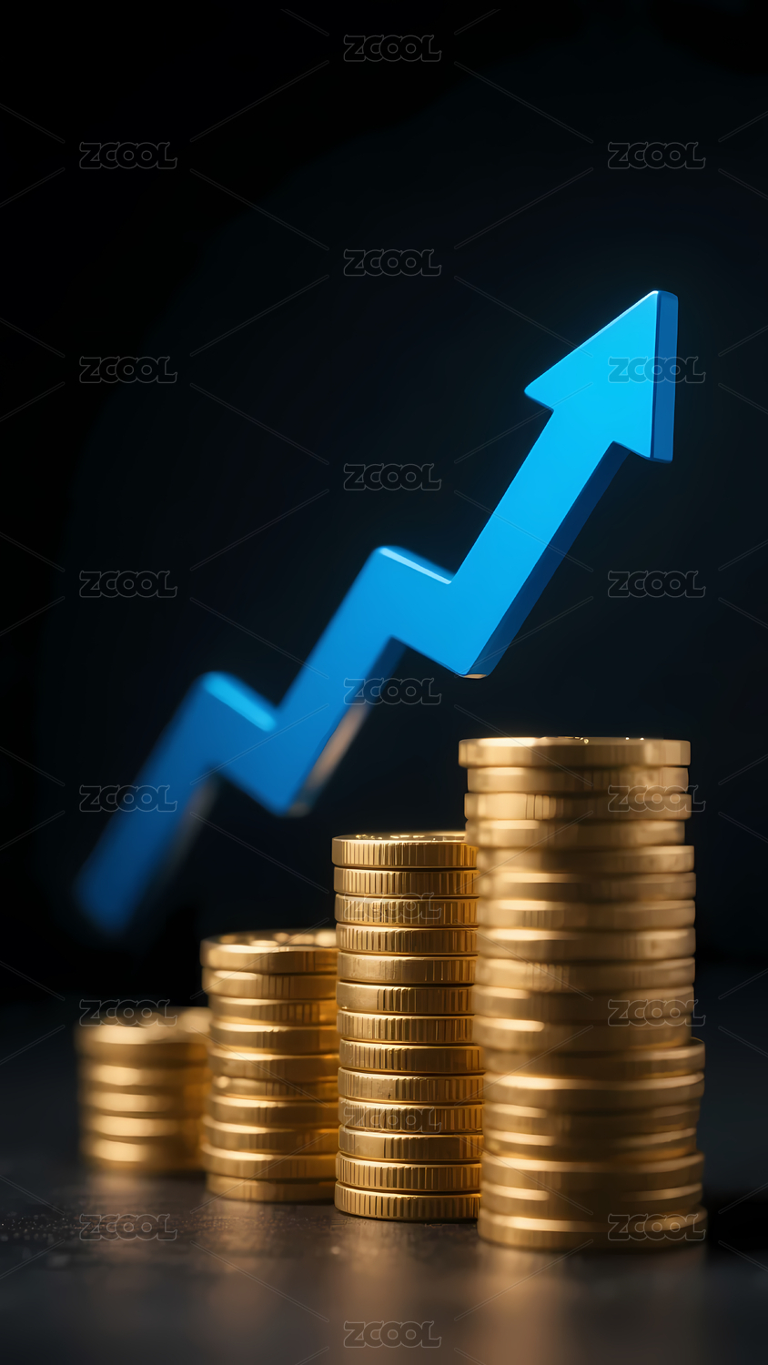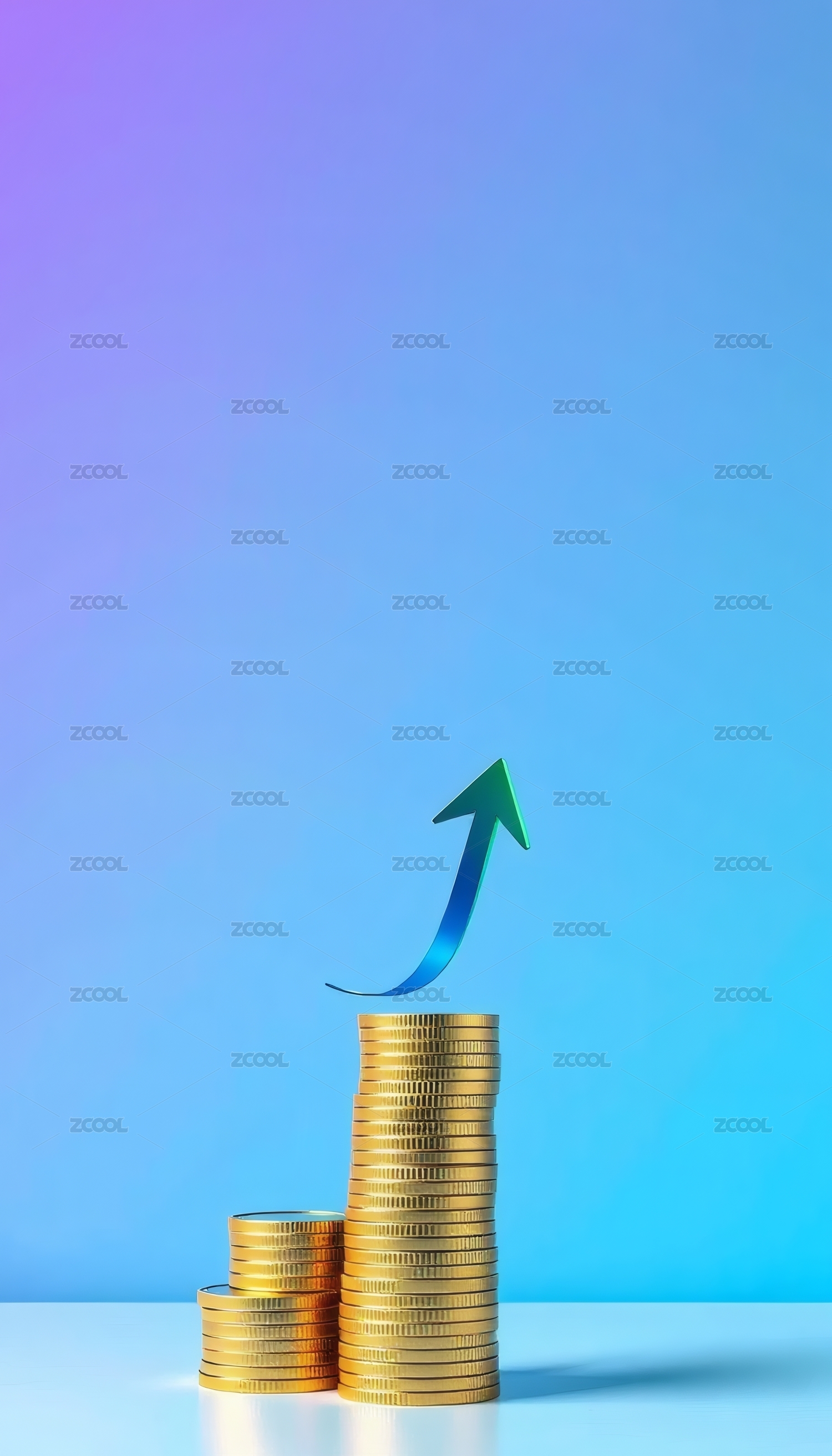 蓝色,黄色,金色,金币,财富,渐变,箭头,增长,进步,趋势