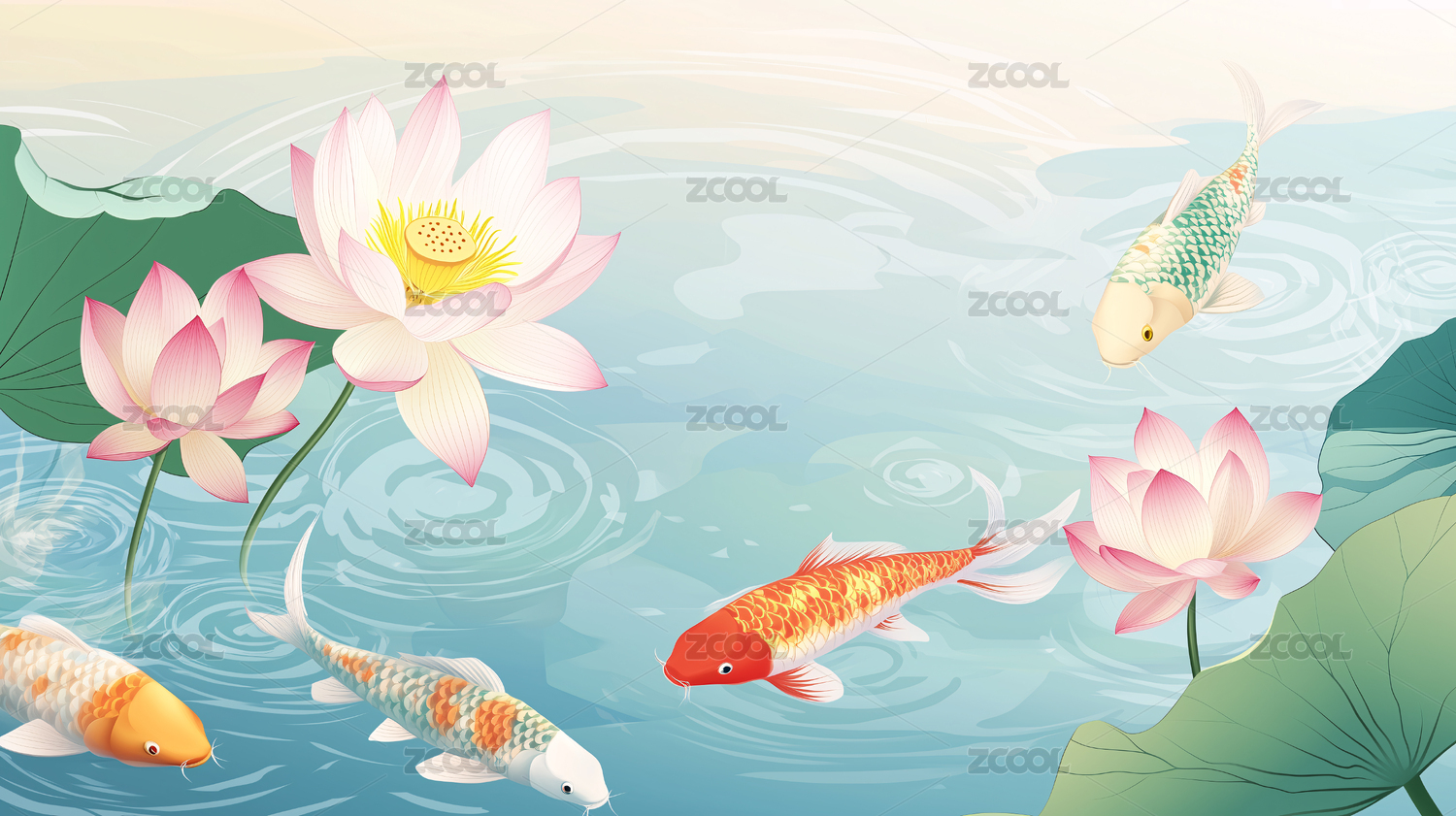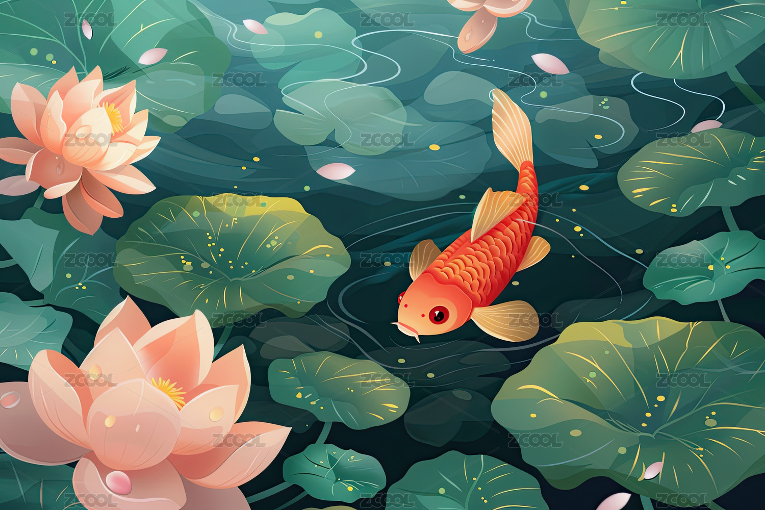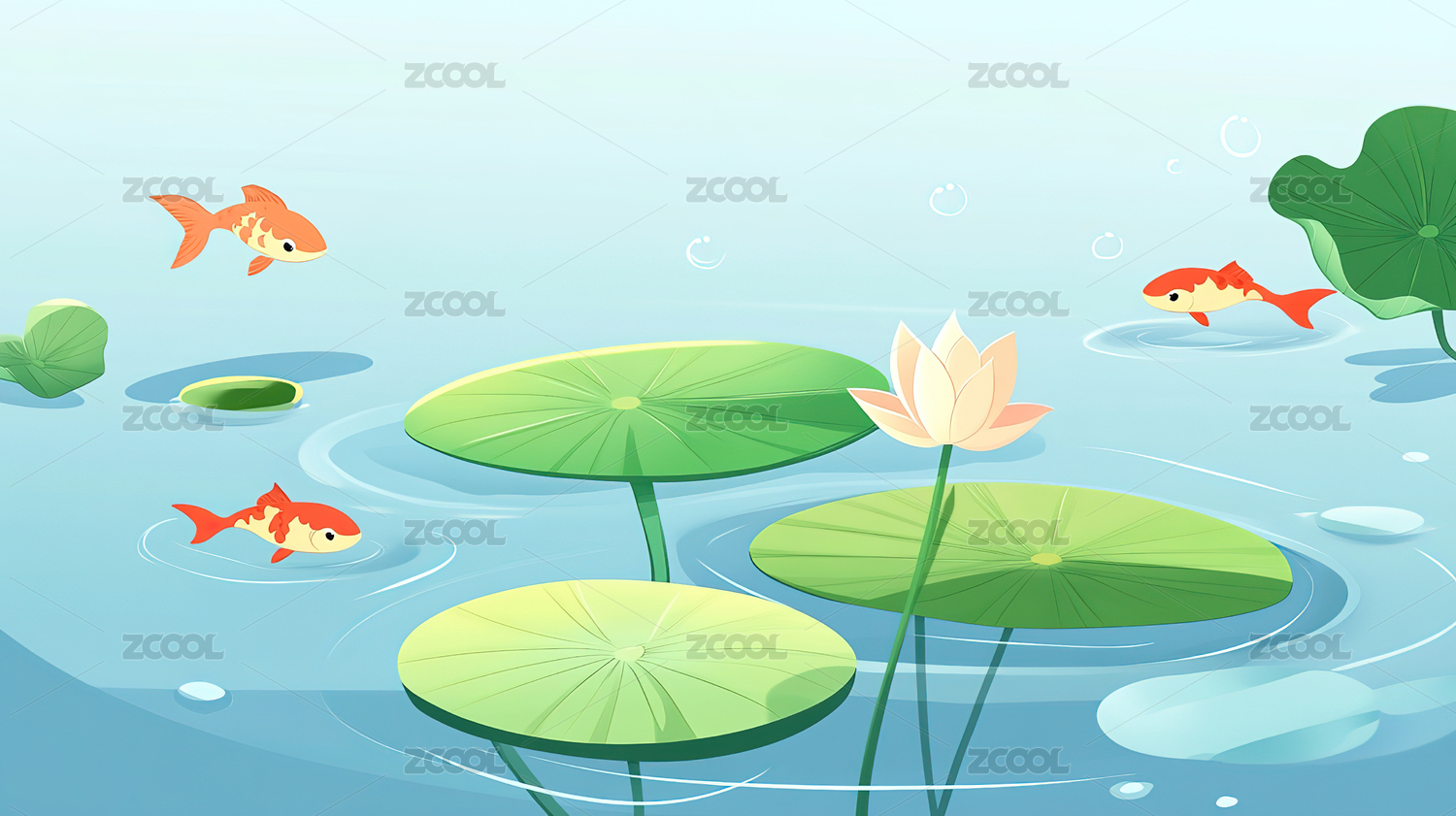 大暑节气夏日荷花夏天池塘荷叶花朵国潮插画