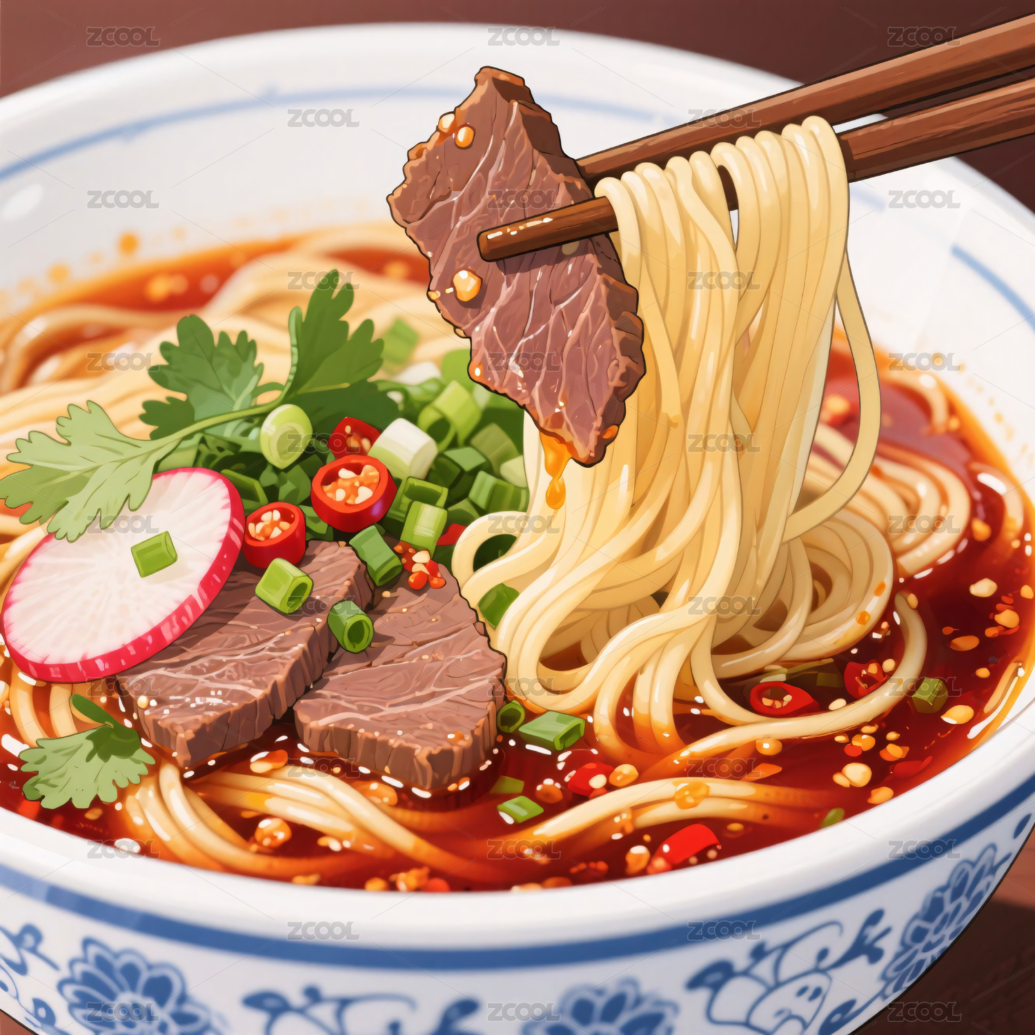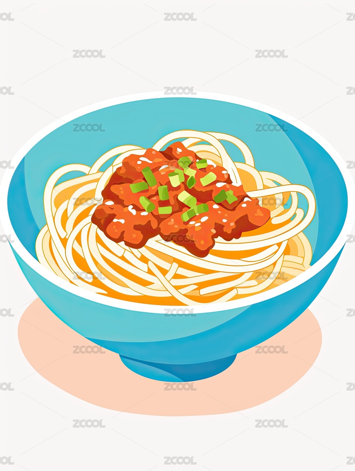 中国特色小吃肉片蔬菜酸辣粉酸辣米线插画
