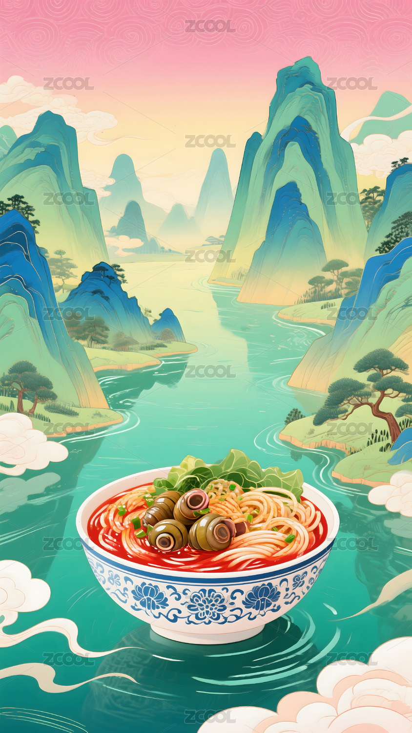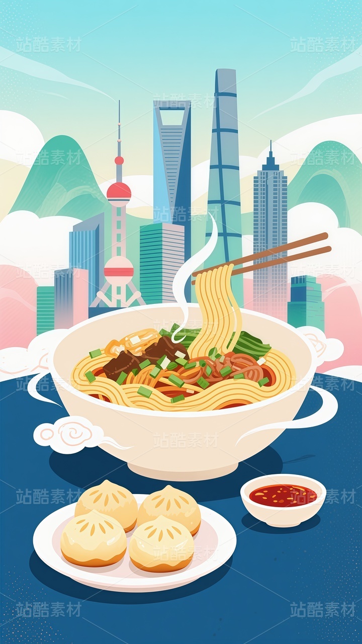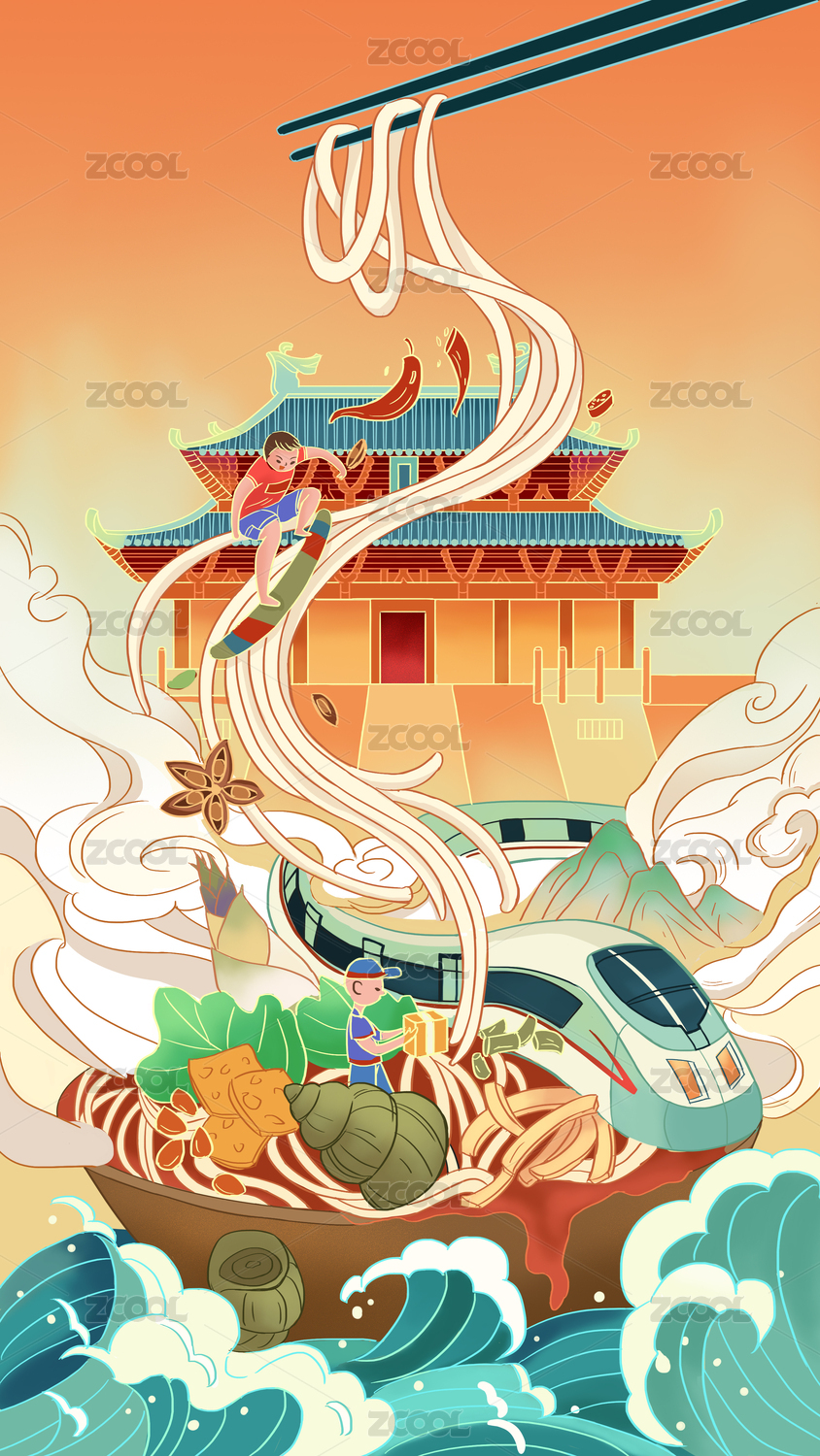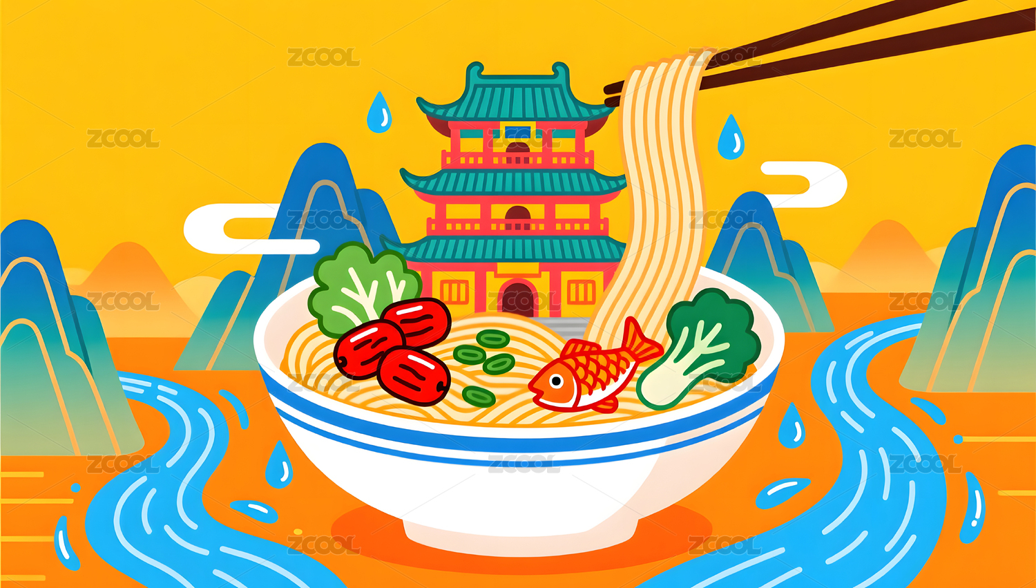 城市南昌传统特色美食南昌拌粉与建筑滕王阁