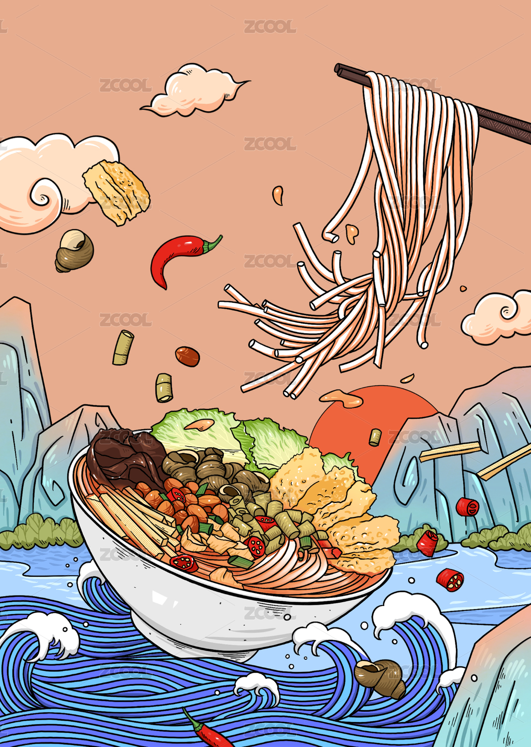 城市南昌传统特色美食南昌拌粉与建筑滕王阁