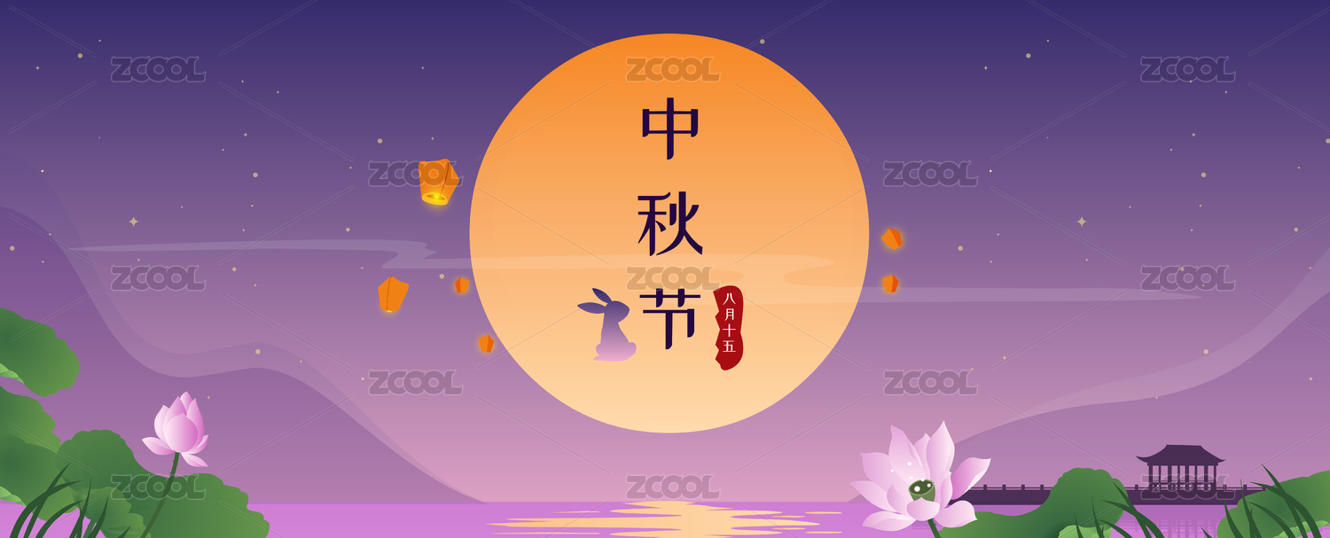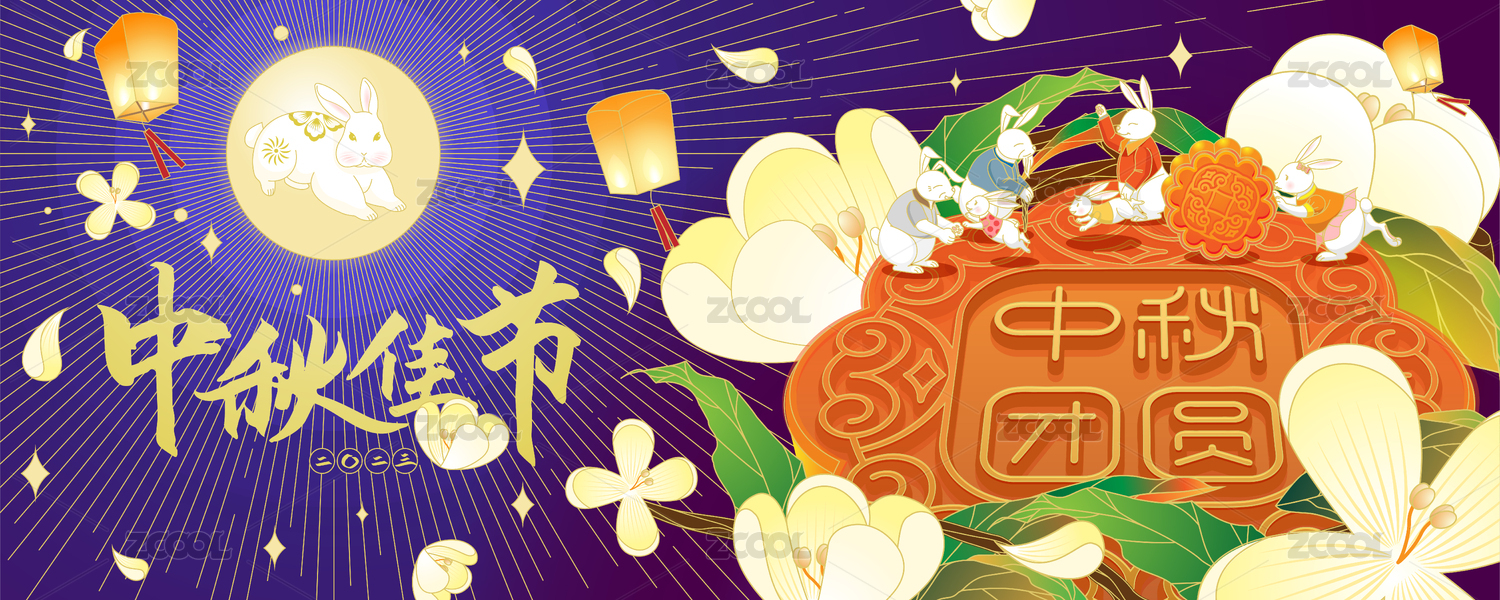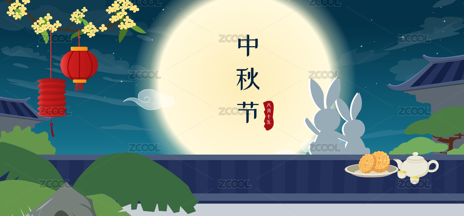 中秋节海报月饼,灯笼桂花,中式风格月亮,中秋佳节