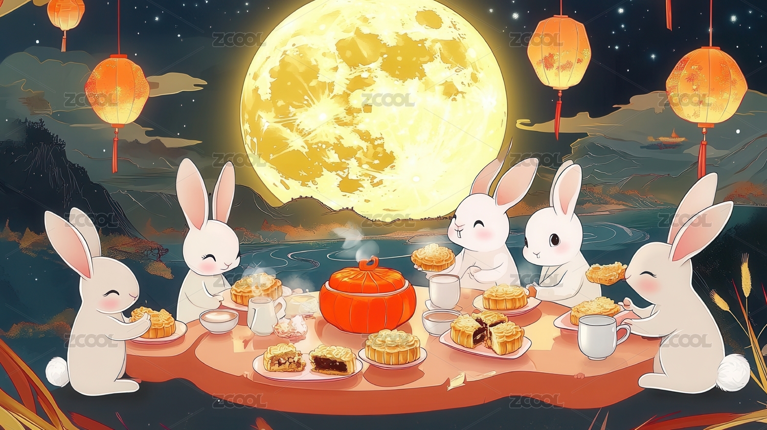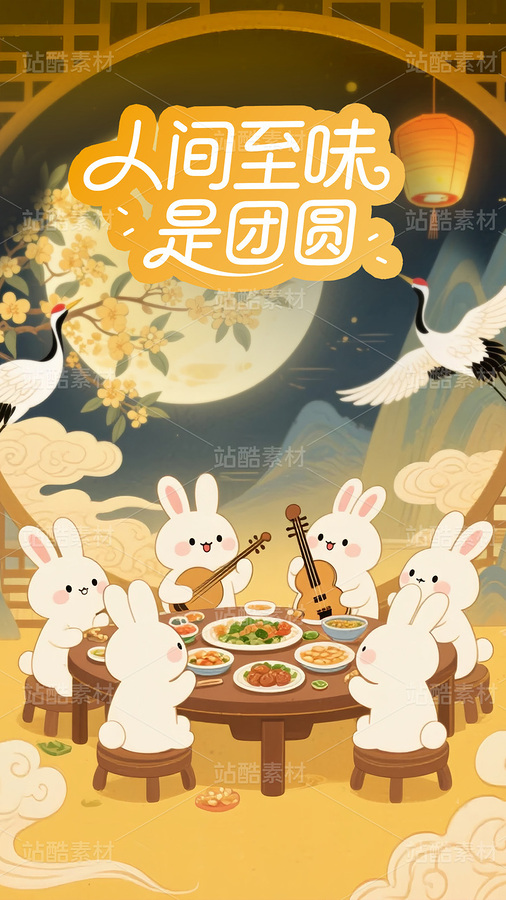 中秋玉兔聚会吃月饼