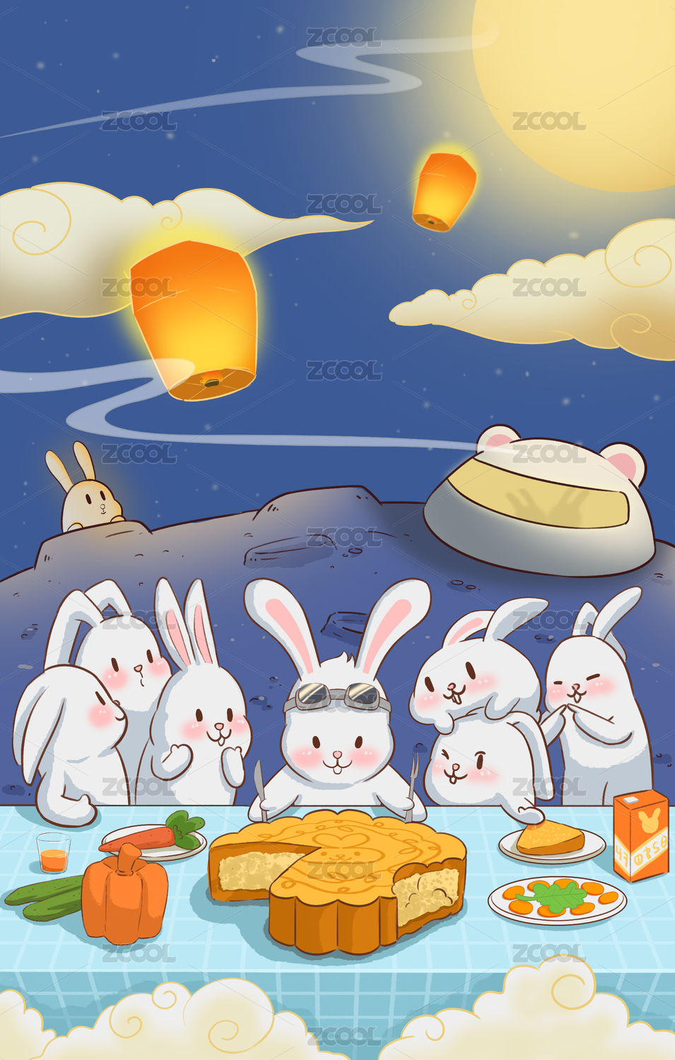 中秋节玉兔月饼插画
