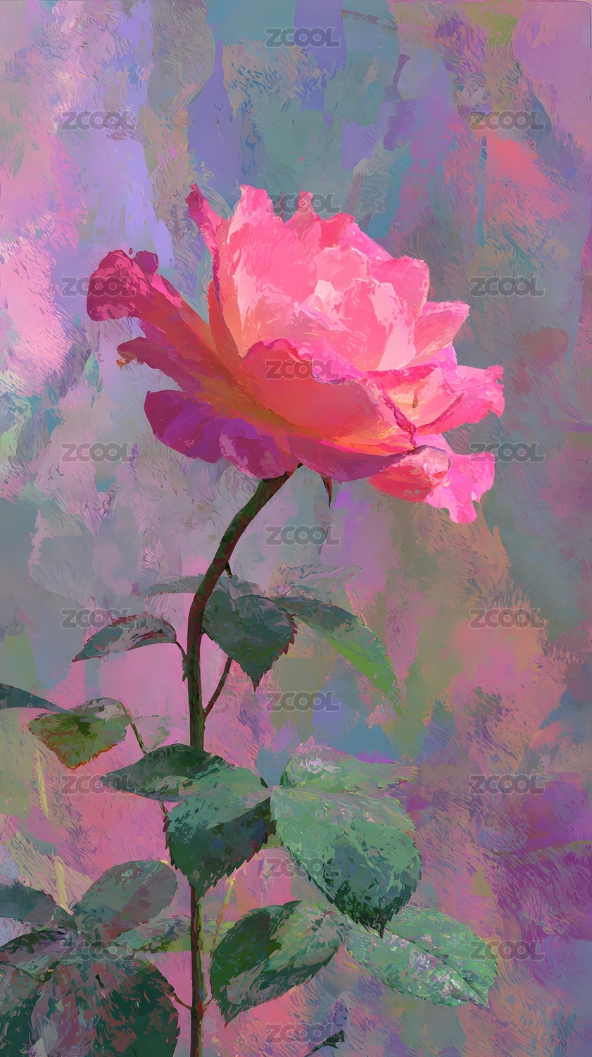 粉色牡丹的油画艺术