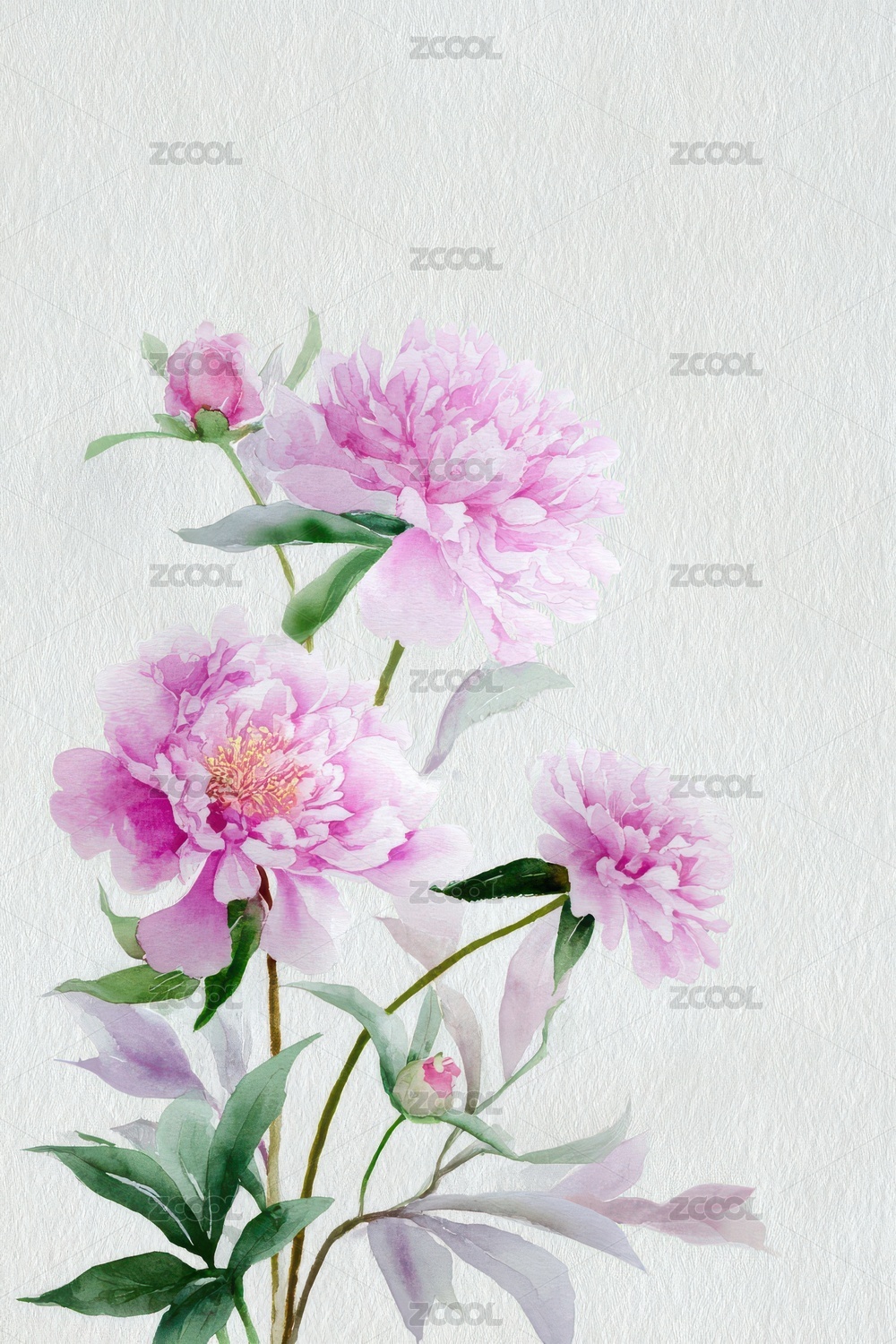 水彩粉色牡丹插画