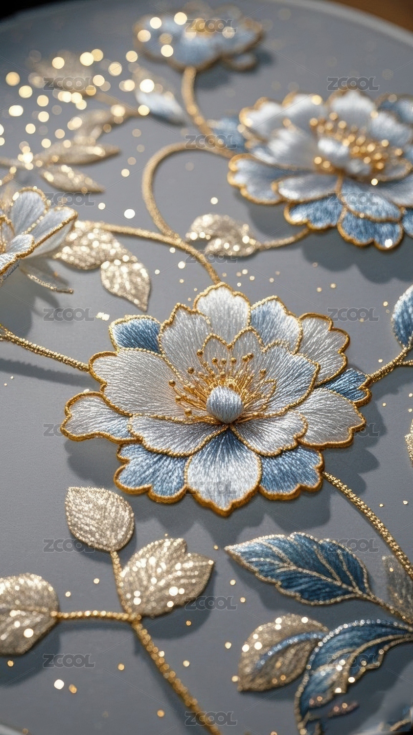 银色刺绣花卉