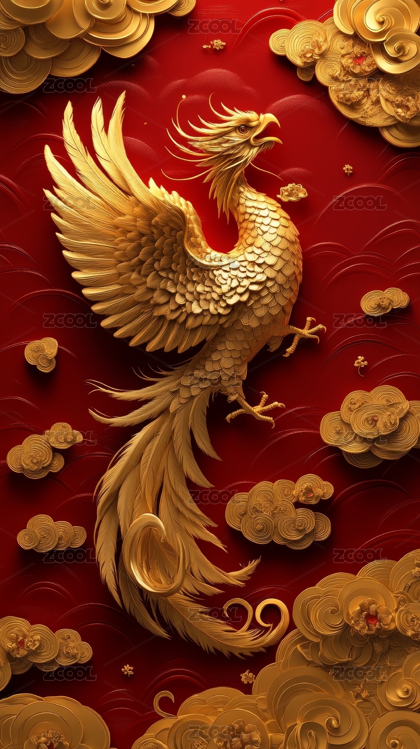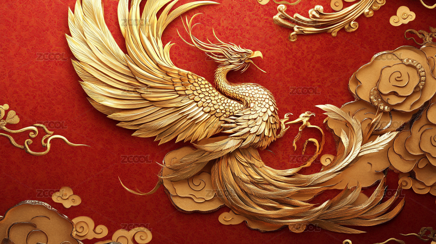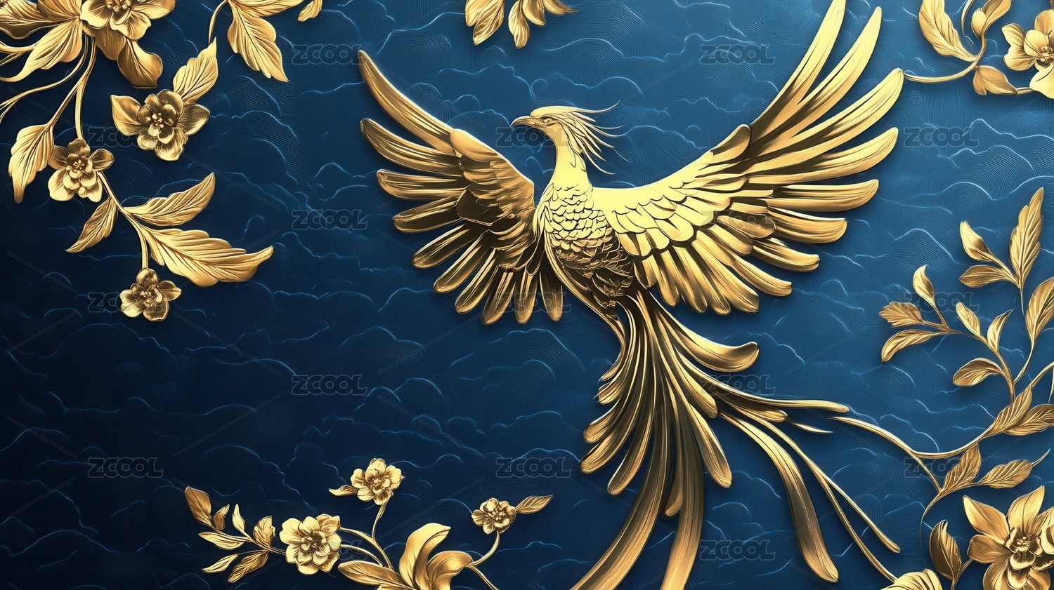 豪华家装金店装饰画金首饰店铺海报金色凤凰壁画