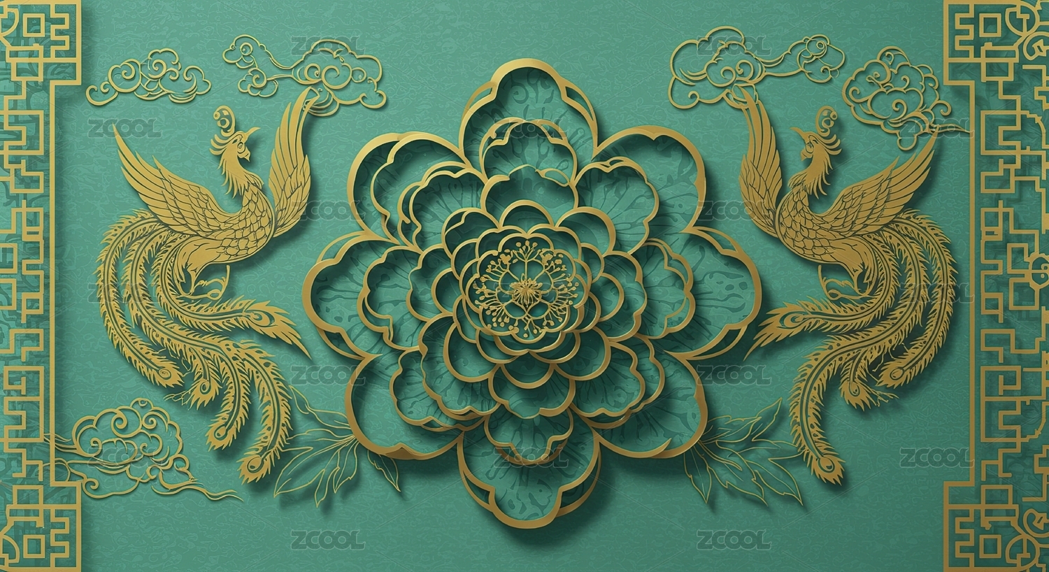 金凤凰豪华家装金店装饰画金首饰店铺海报花开富贵壁画