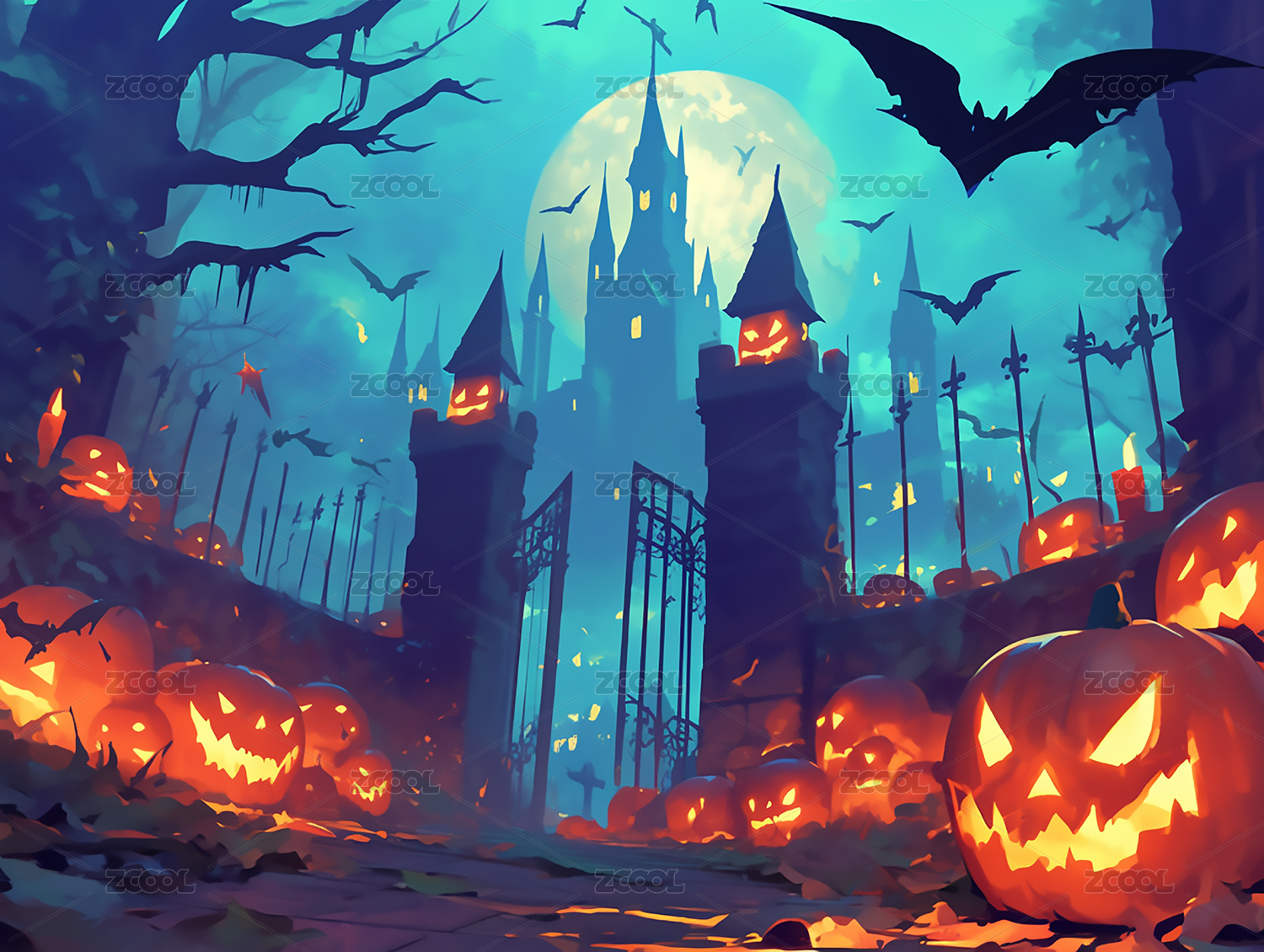 万圣节场景插图