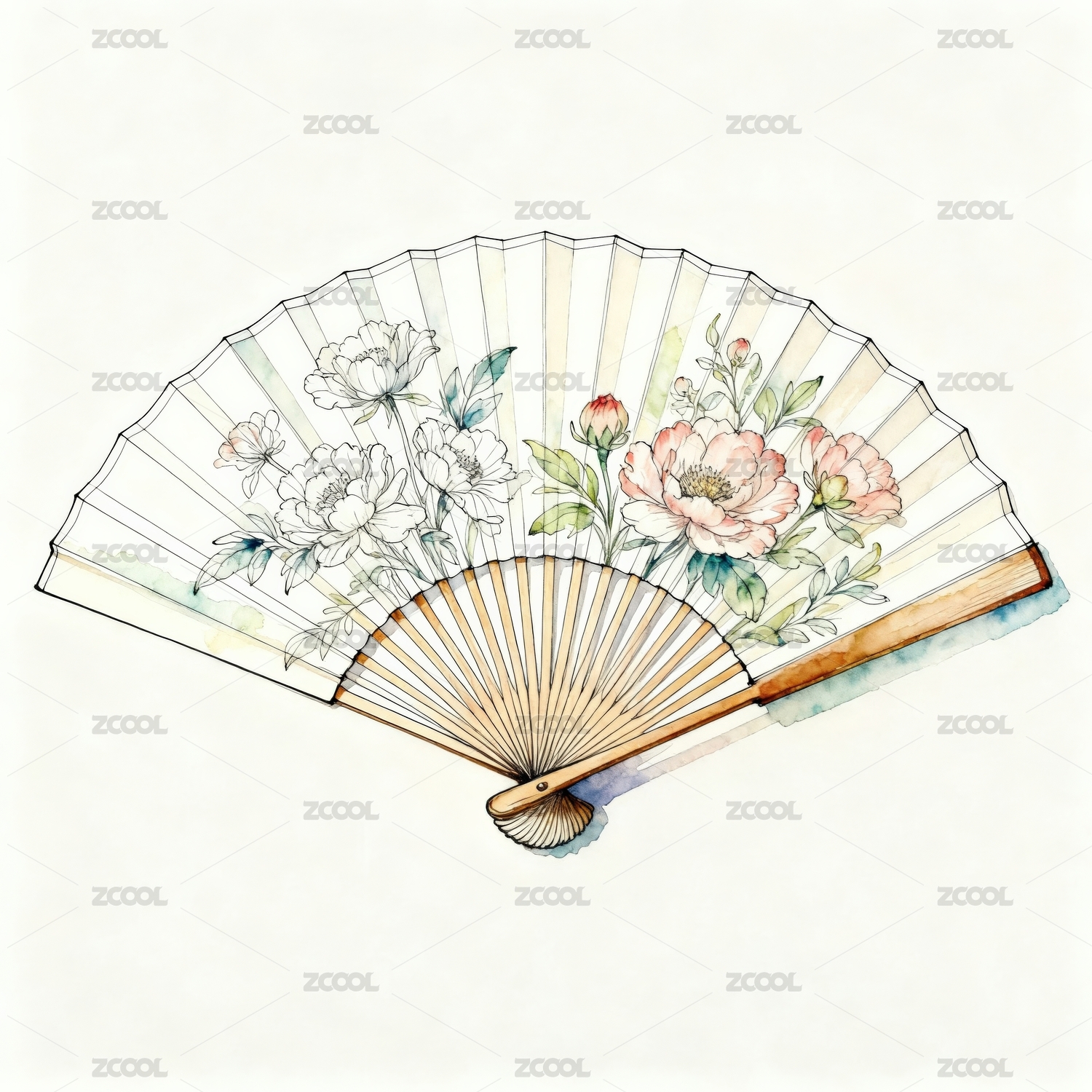 手绘国风插画素材燕子油纸伞荷花柳枝