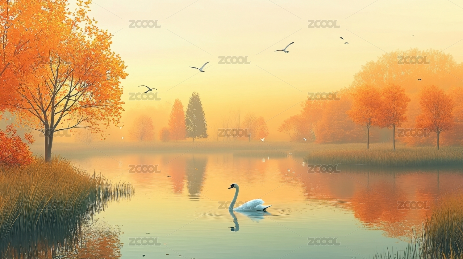 黑天鹅油画鸿运当头风景画油画动物与风景油画