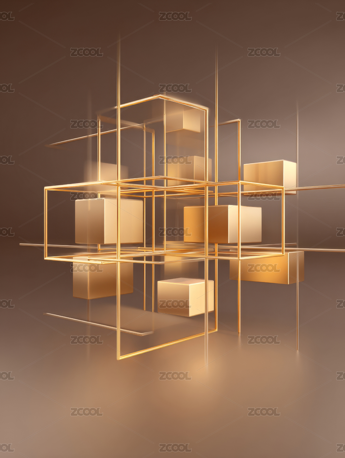 金色橙色红色黑色高级神秘科技几何艺术空间艺术