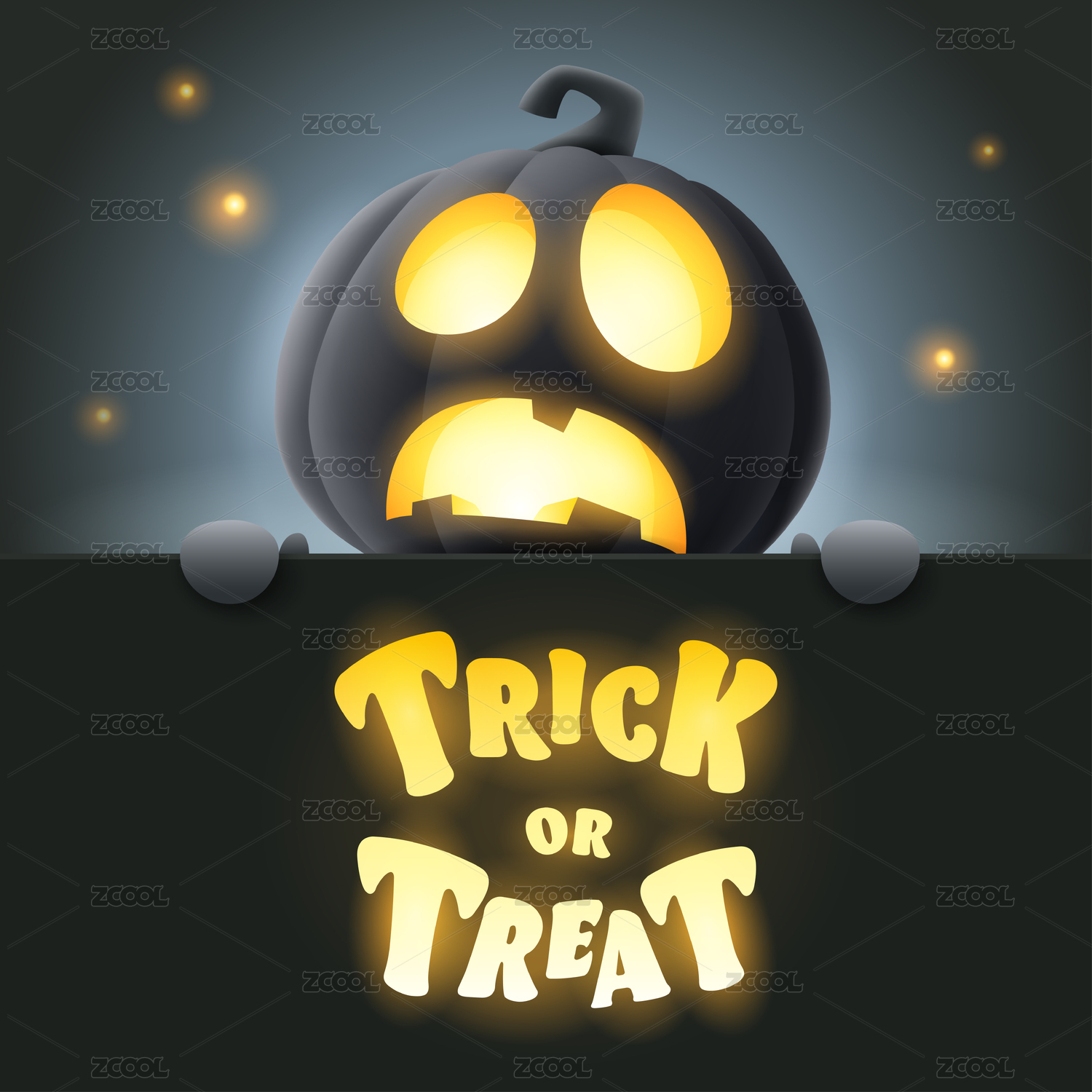 万圣节快乐黑色南瓜杰克灯笼手拿小展板