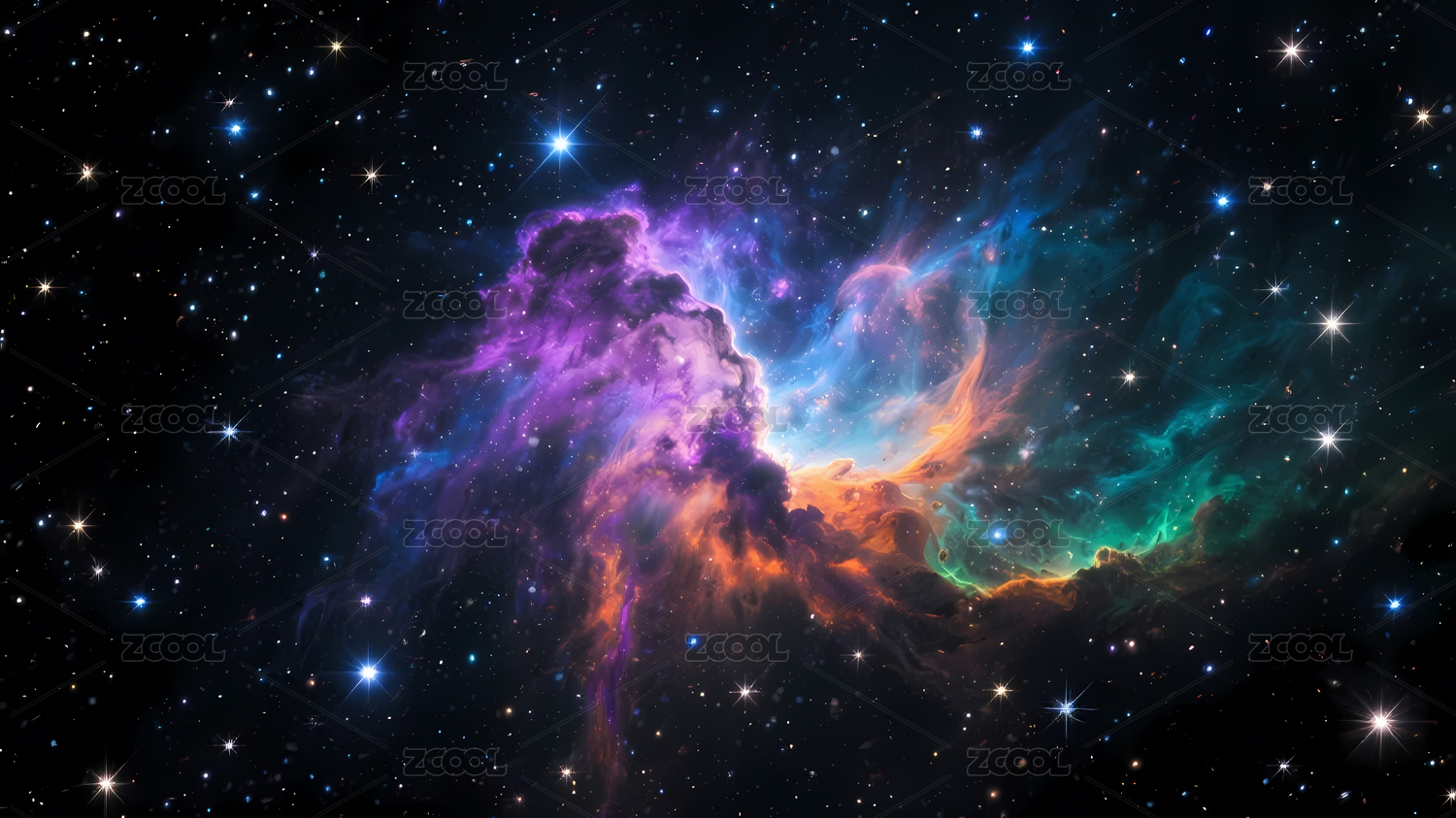 橙色,蓝色,黑色,星云,深邃,光点,紫色,点缀,星空,星星