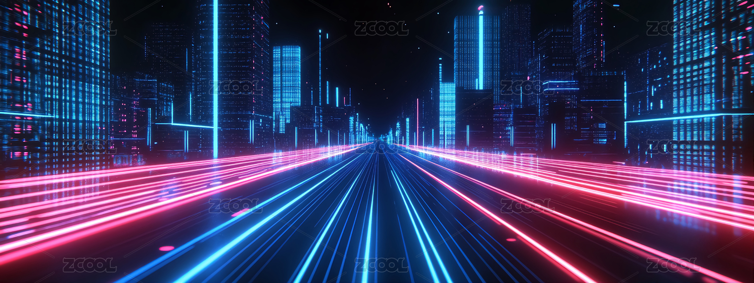 蓝紫色渐变科技城光轨背景