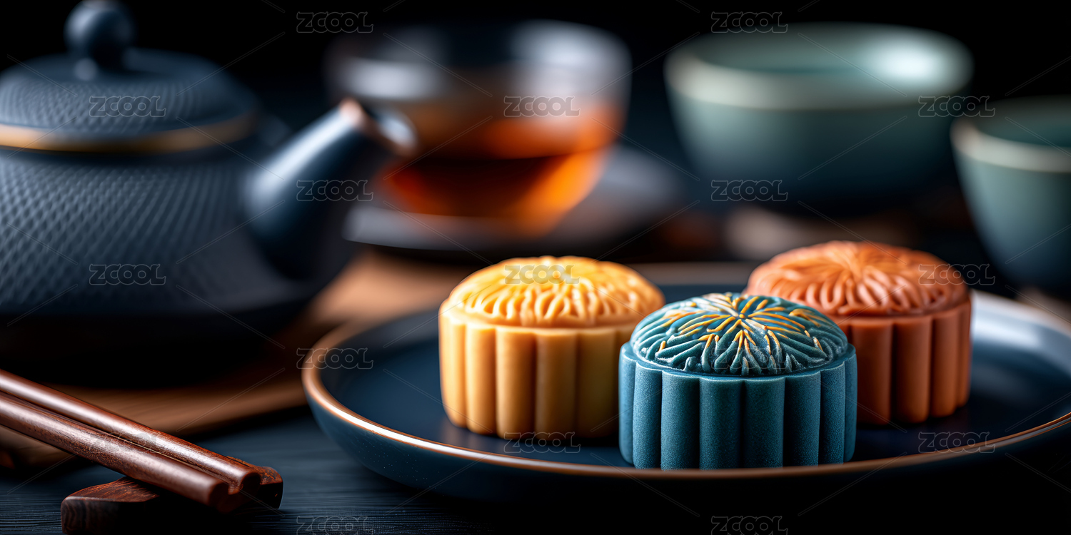 月饼,中秋节,茶具,茶点,节日,传统文化,美食,糕点,茶壶,茶杯