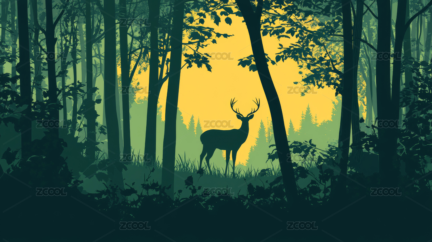 秋天野外矢量扁平鹿树林手绘插画 立秋节气插画