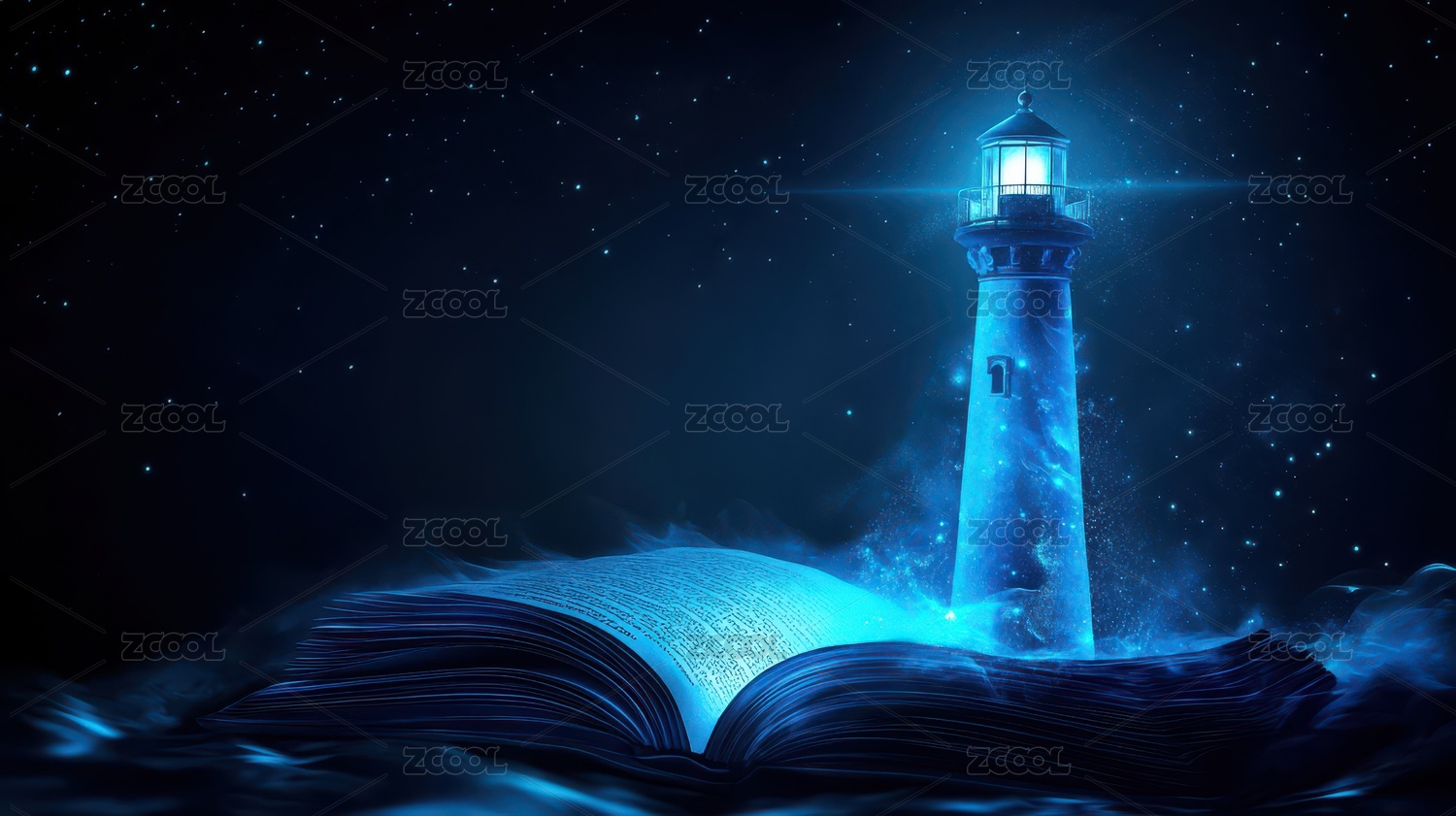 书本,灯塔,光芒,夜空,星星,魔法,阅读,知识