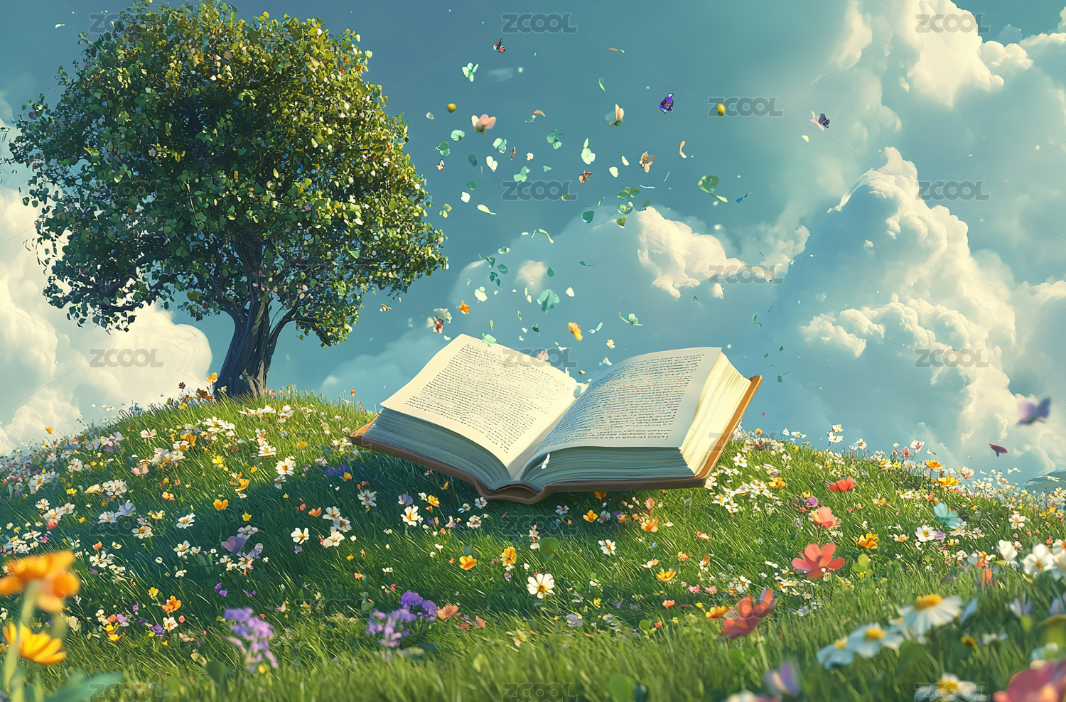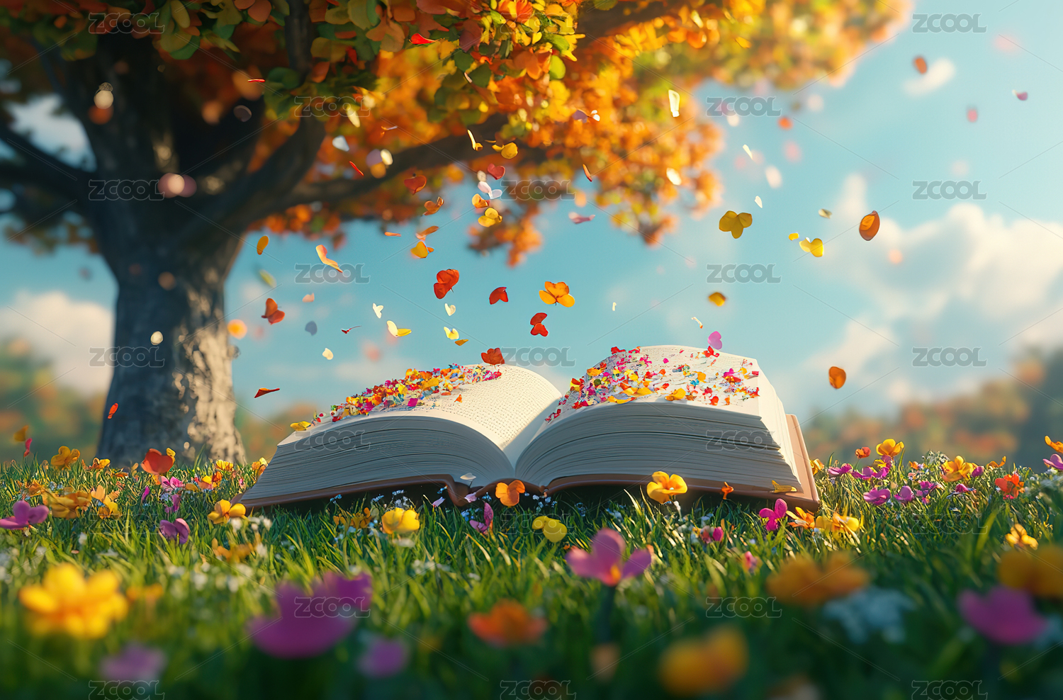 书本,梦幻,自然,花朵,秋天,小树,落叶,阳光,温暖