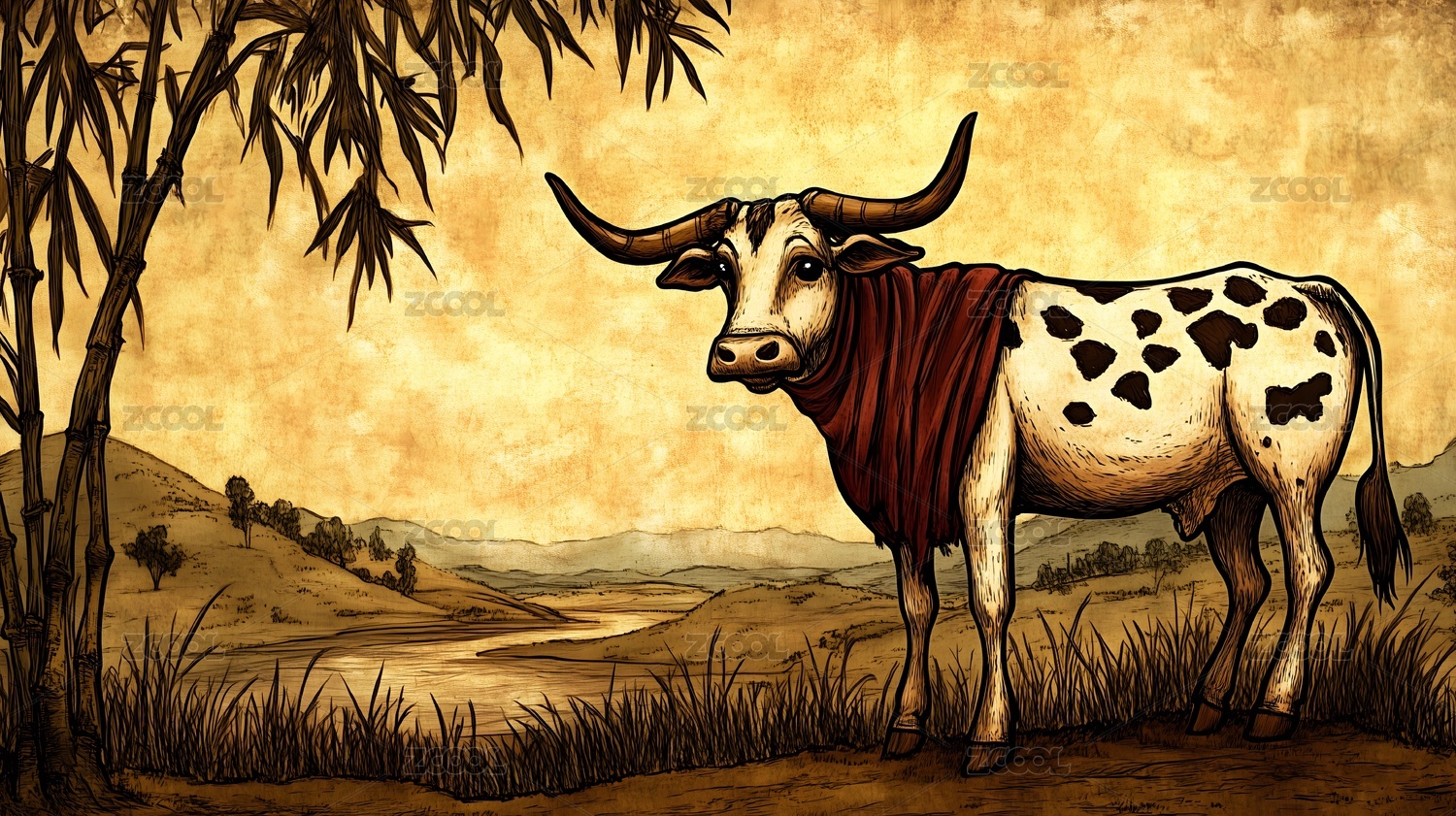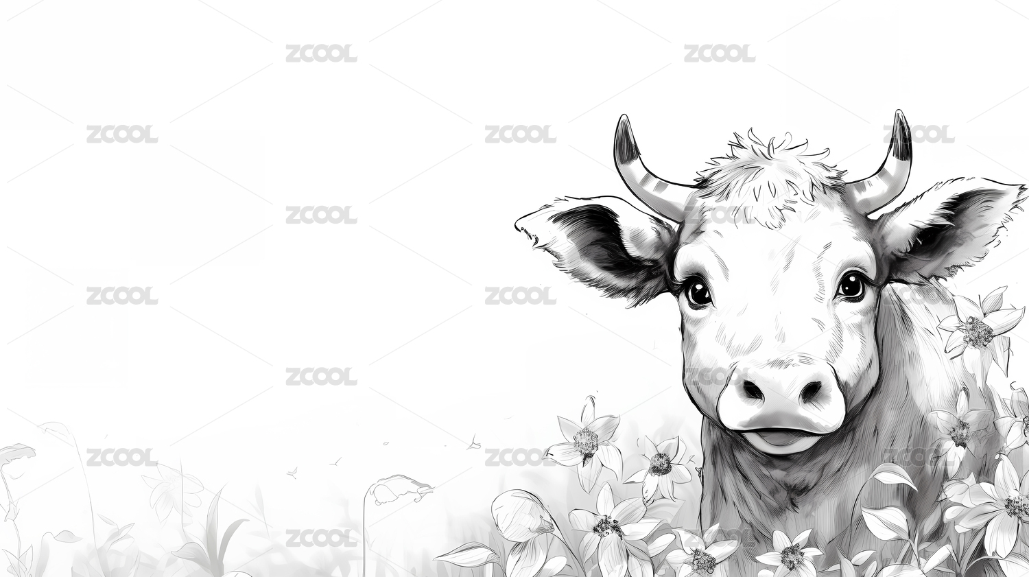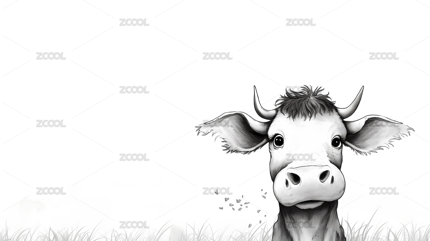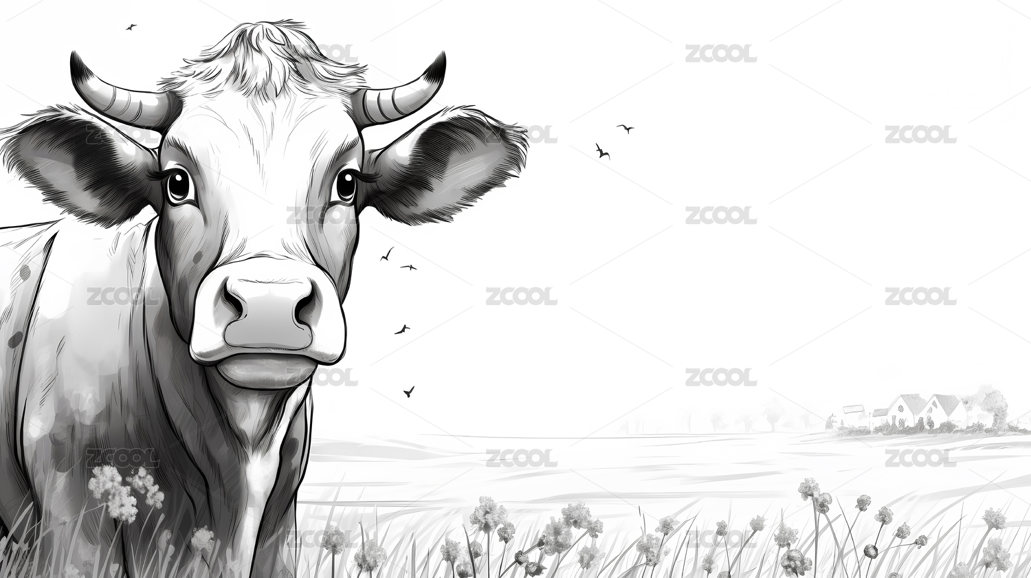 艺术,背景,自然,牛,田野,素描,黑白,简约