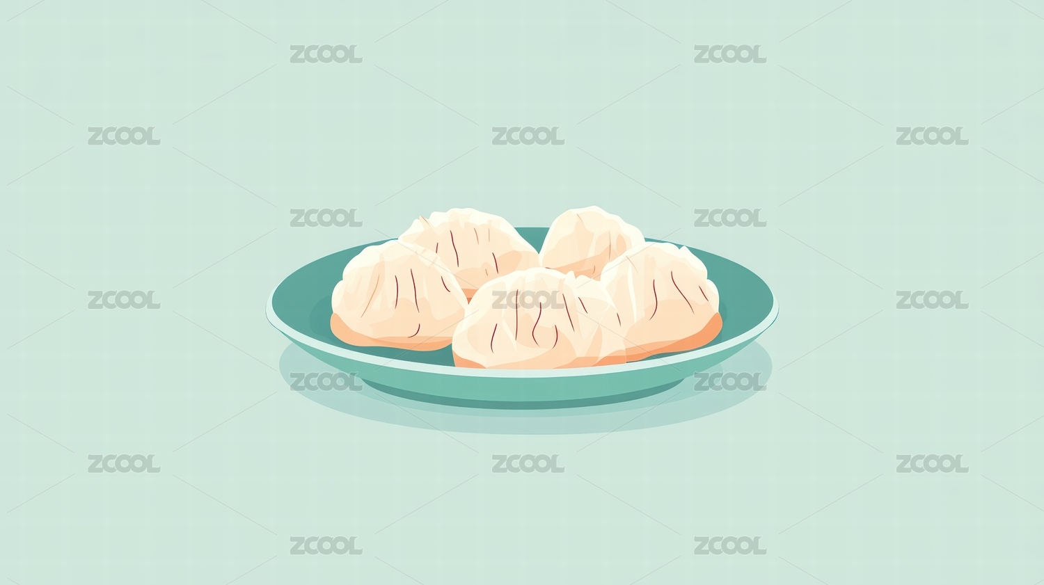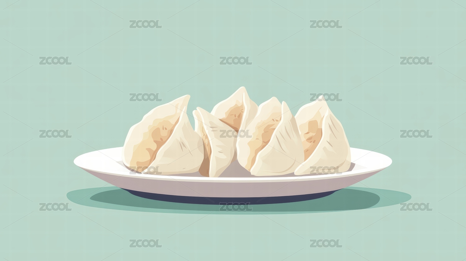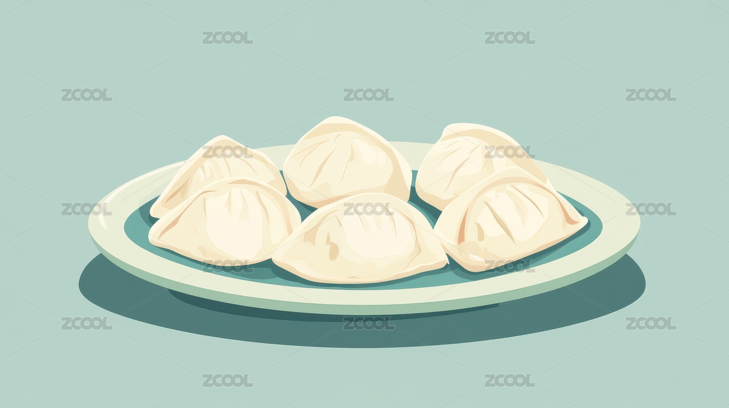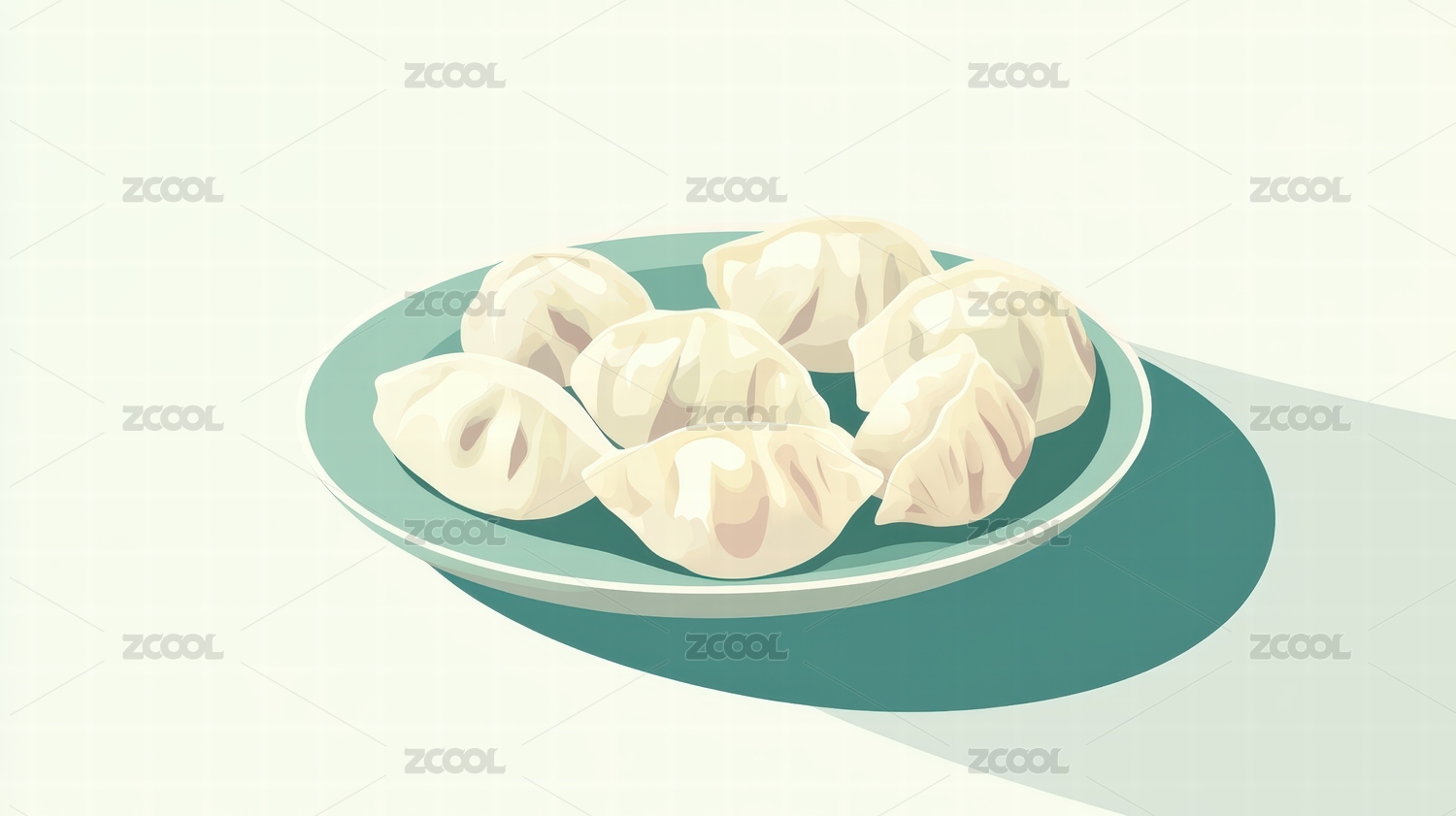 绿色,简洁,饺子,盘子,食物,折叠,手绘,影子