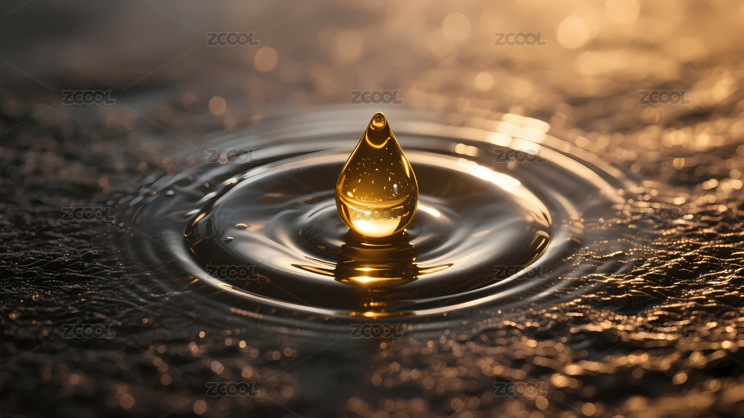 金滴激起水面波纹与光芒交织的瞬间