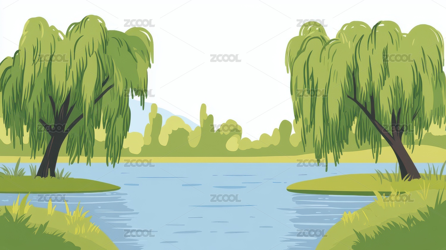 自然,绿色,柳树,宁静,倒影,植物,河流,风景