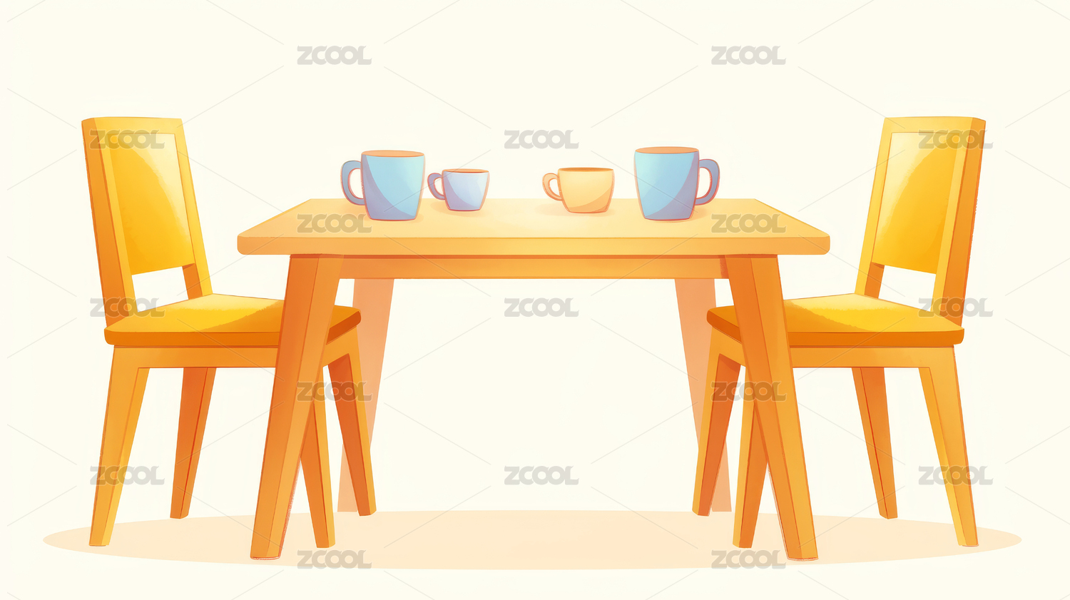 桌子家具卡通插画