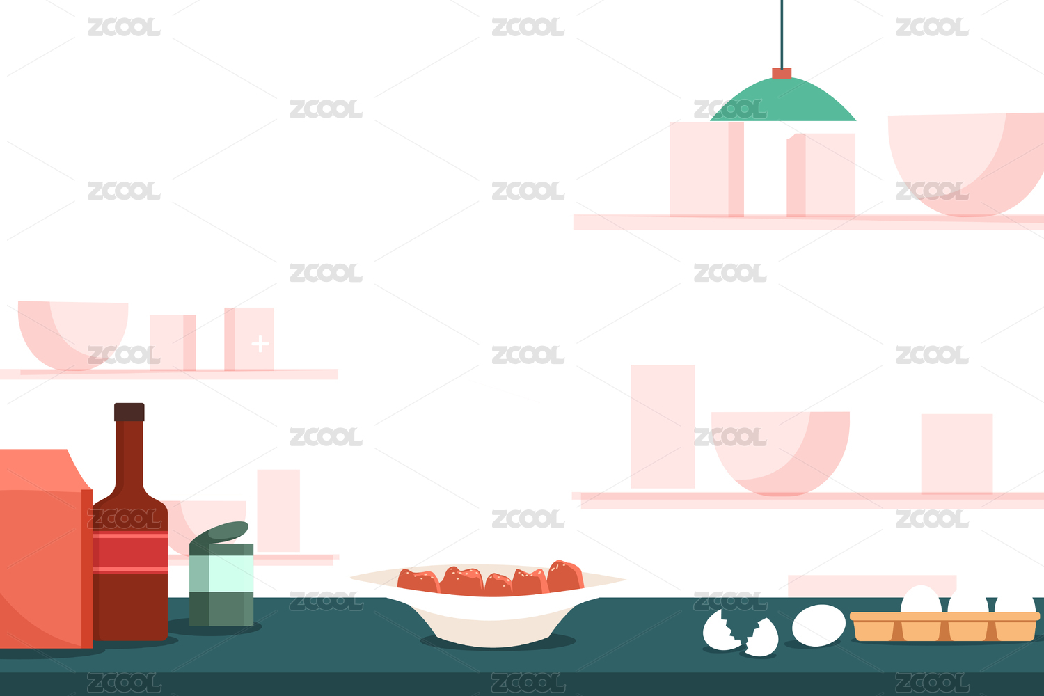 卡通手绘小清新餐厅吧台设计插画