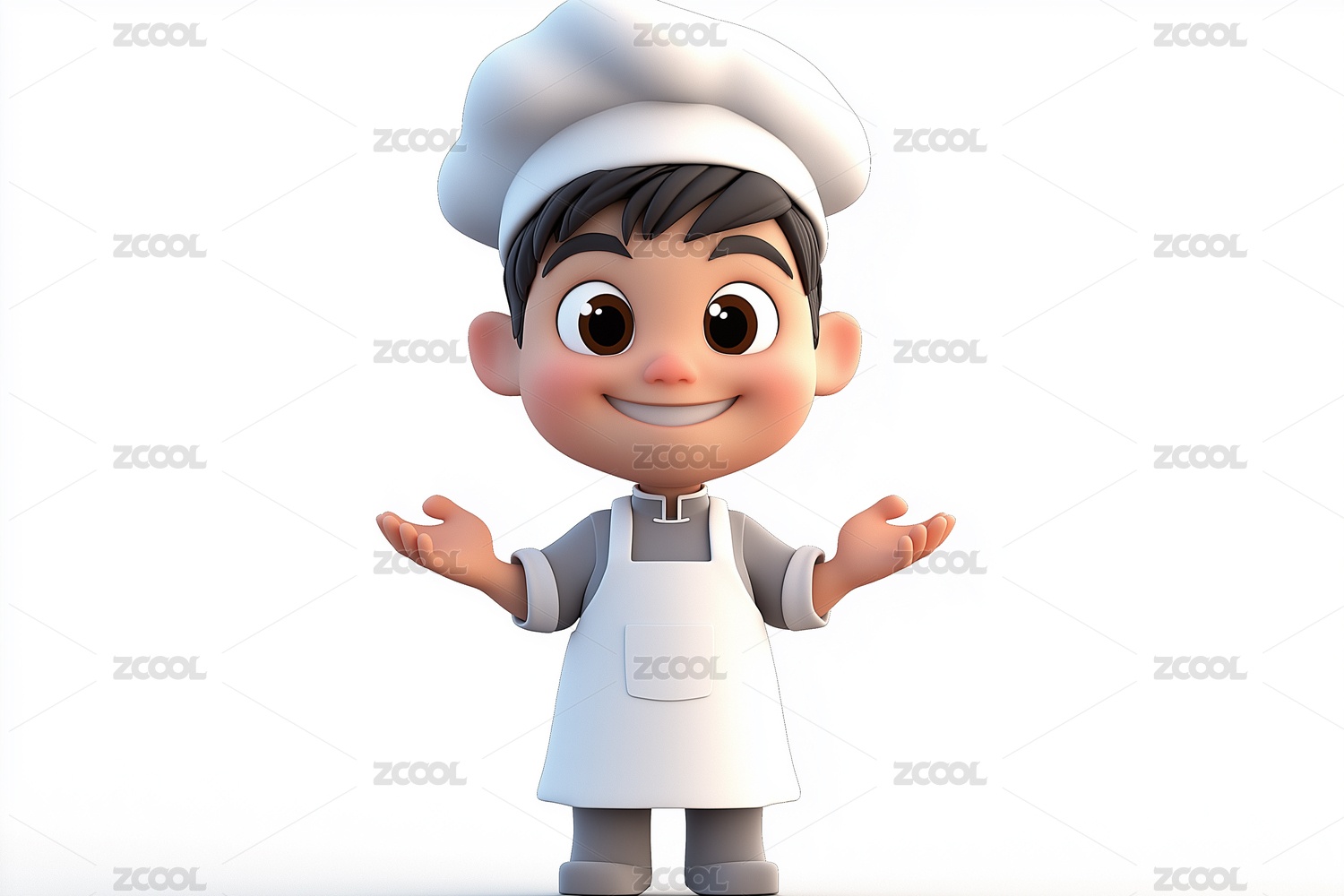 一个可爱的3d卡通男生服务员形象