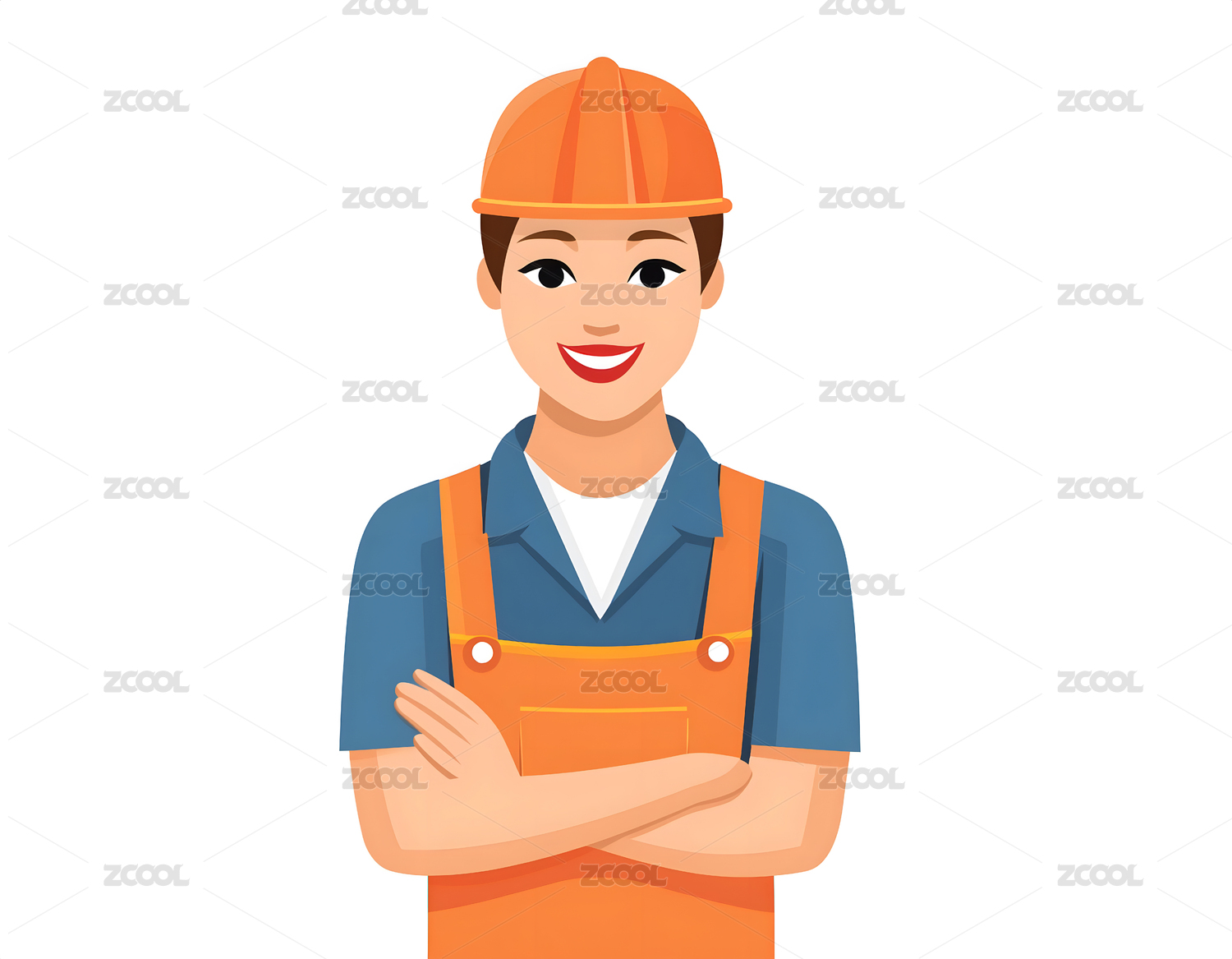 工人,工具箱,工作服,手套,帽子,蓝色,站立,微笑