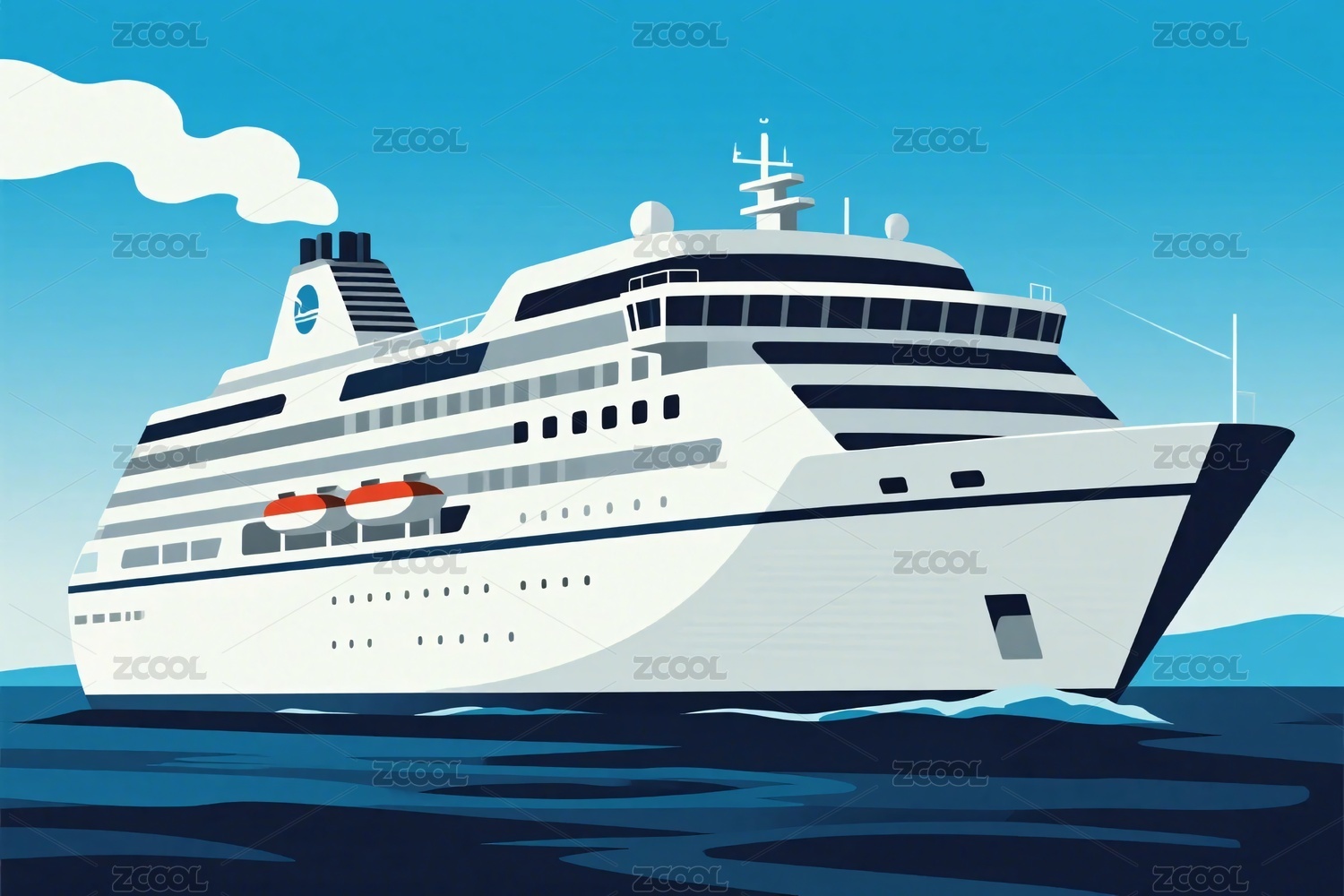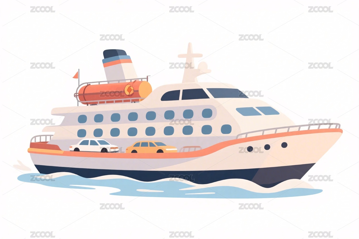 国庆假日出发旅游卡通豪华轮船交通运输插画