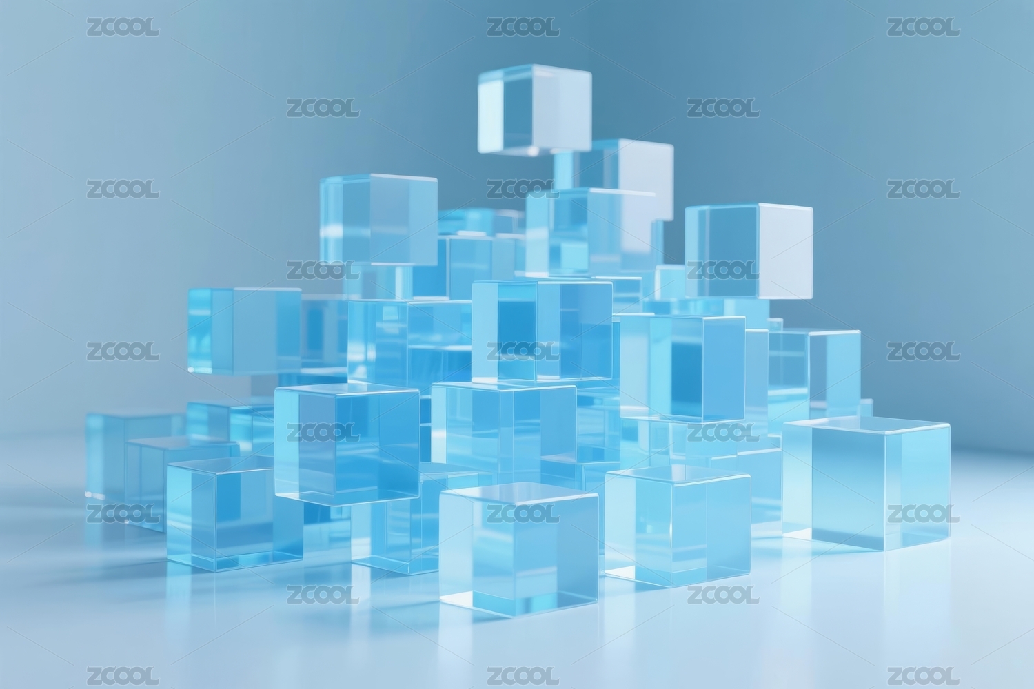 透明与彩色玻璃方块组合