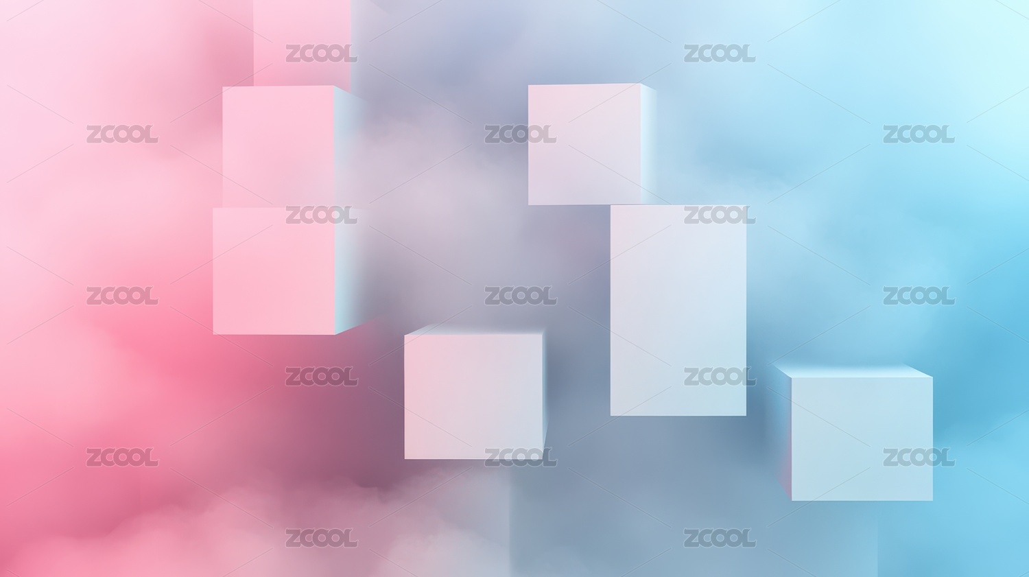 渐变色彩,柔和色调,现代设计,梦幻,方块,抽象图案,几何元素,云雾感