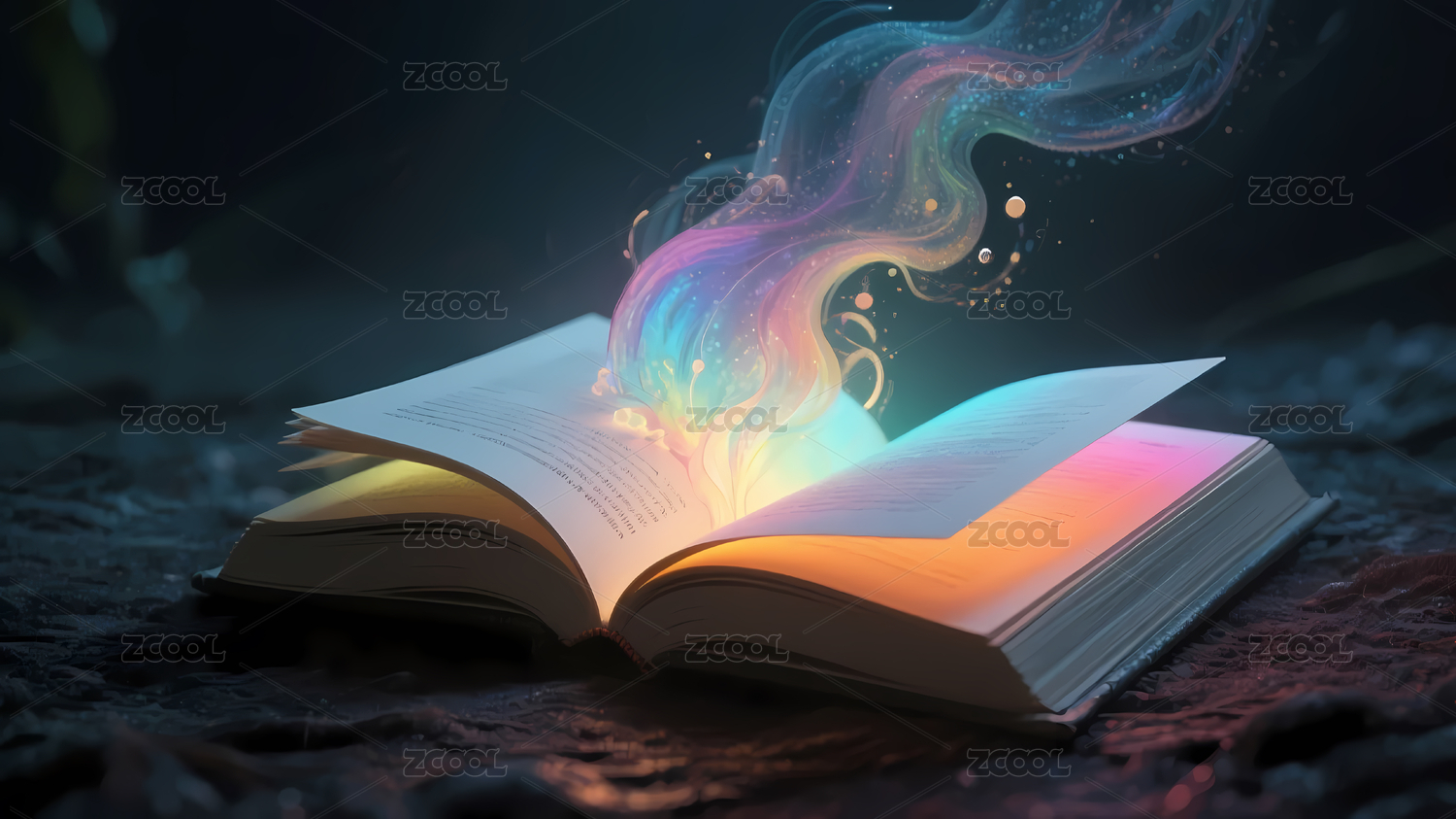 视觉, 蓝色,紫色, 效果, 模糊, 深色, 书籍, 打开, 光晕, 烟雾