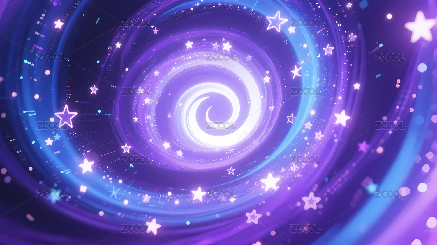 紫蓝渐变螺旋图案与光点