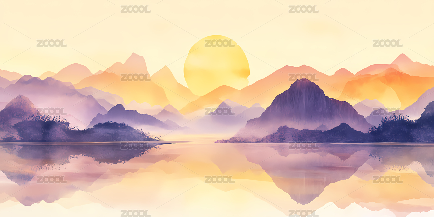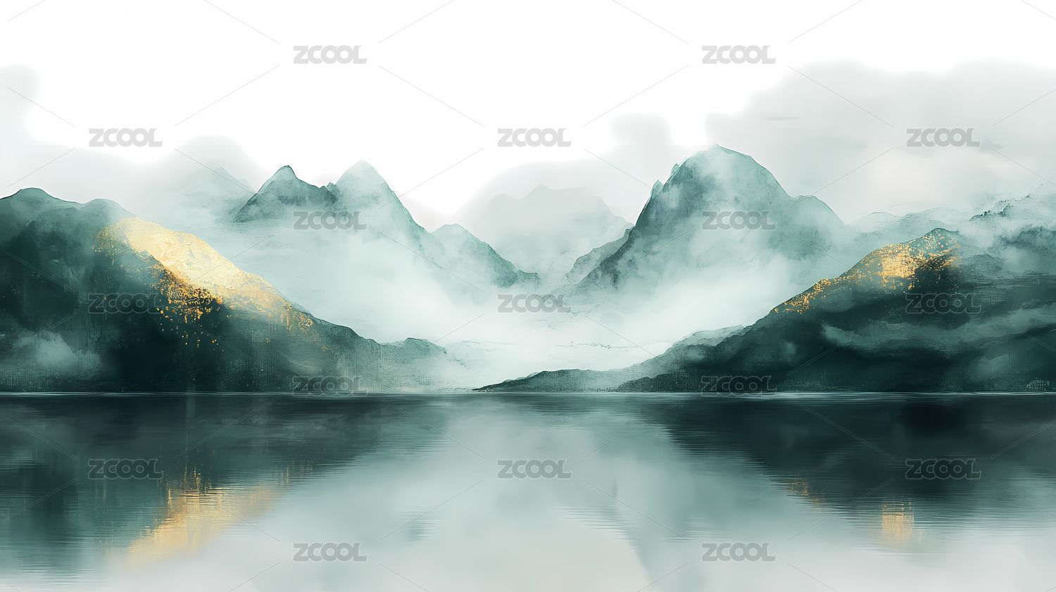 山峰,云雾,倒影,淡雅,自然美,湖泊,朝霞,水天一色