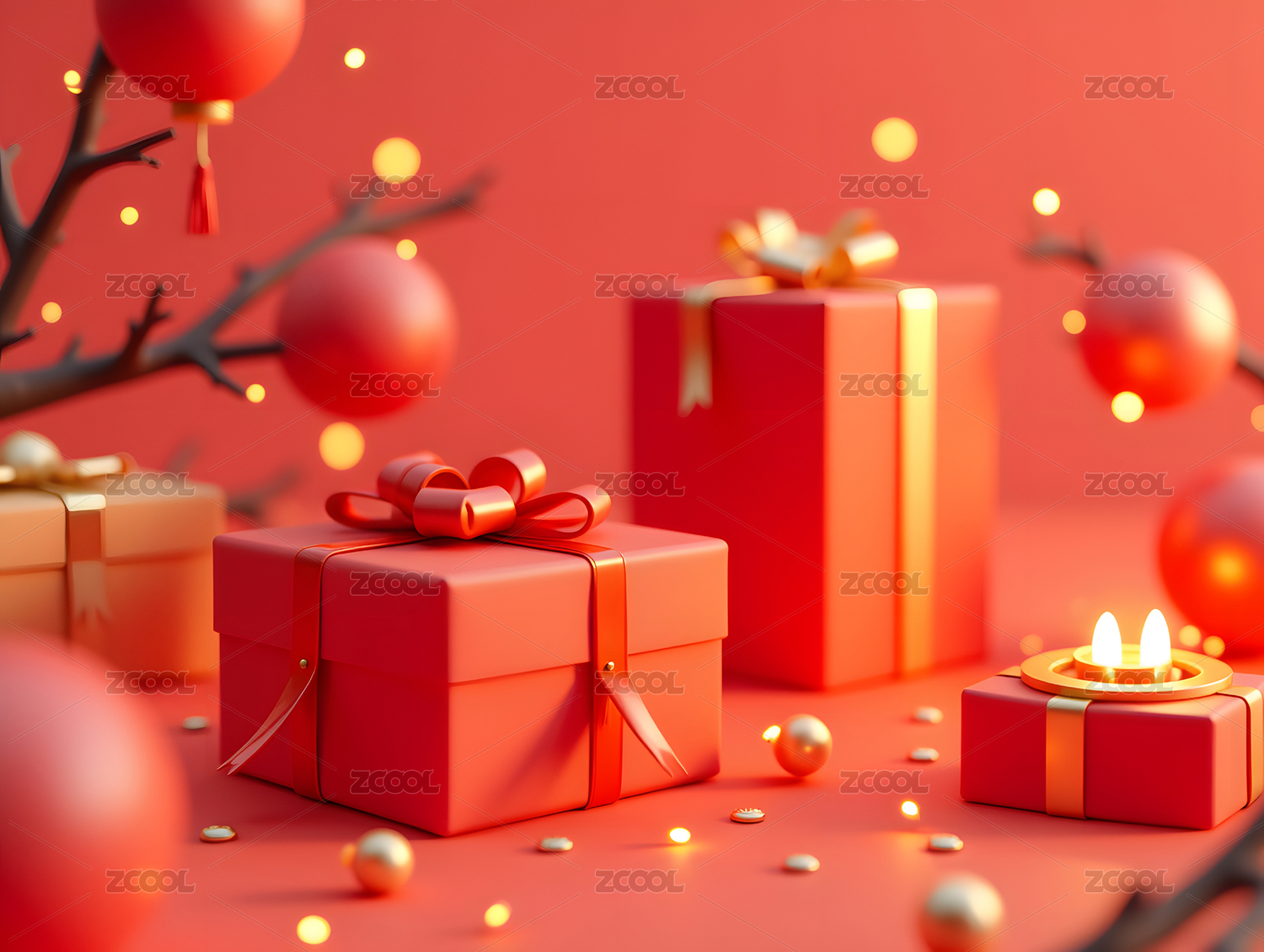 光斑,光点,橙色,红色,金色,背景,礼物盒,节日,喜庆,圣诞树