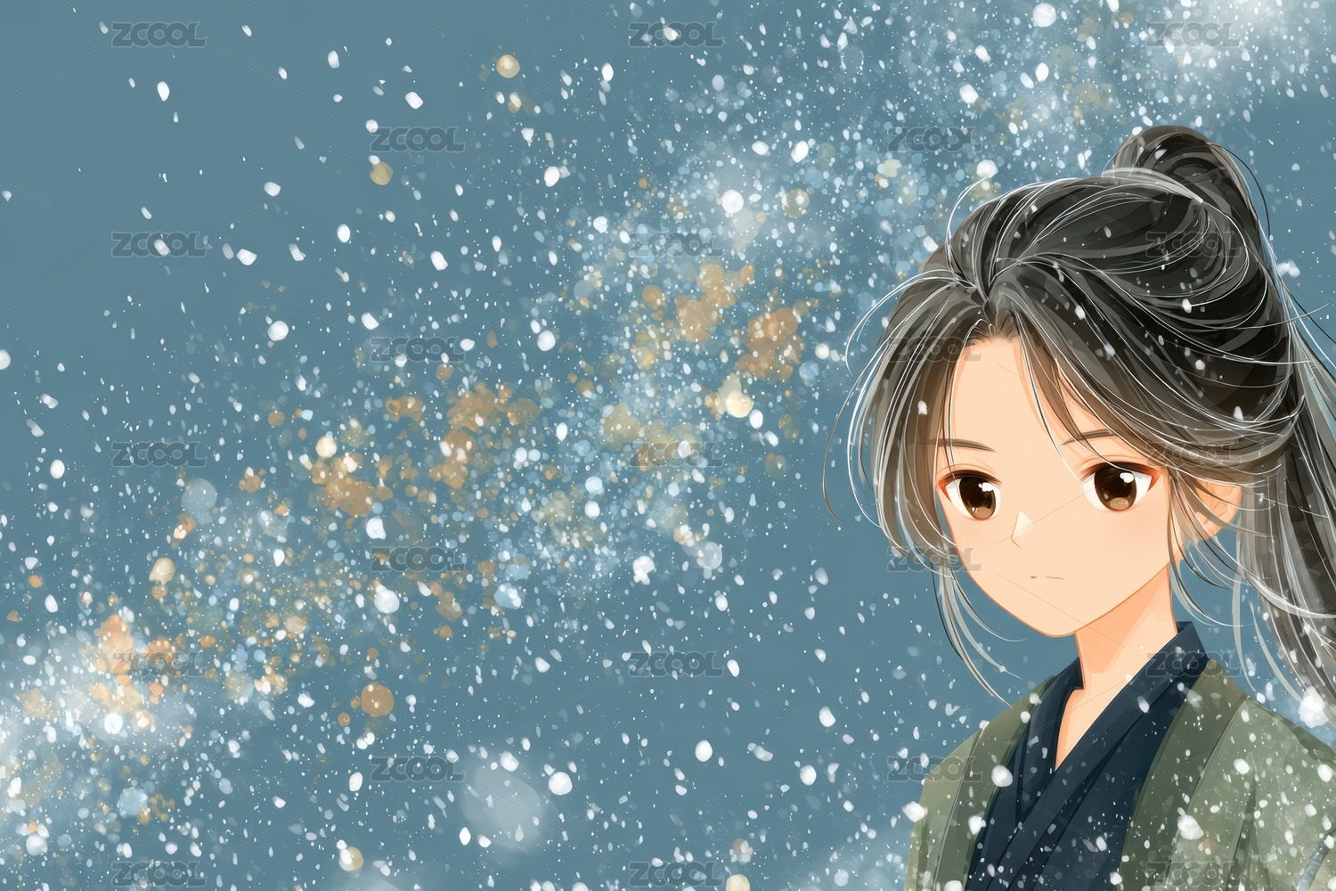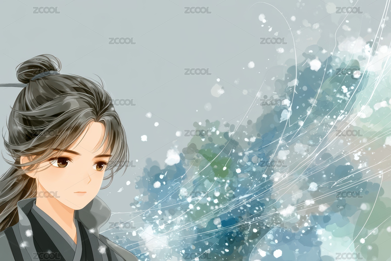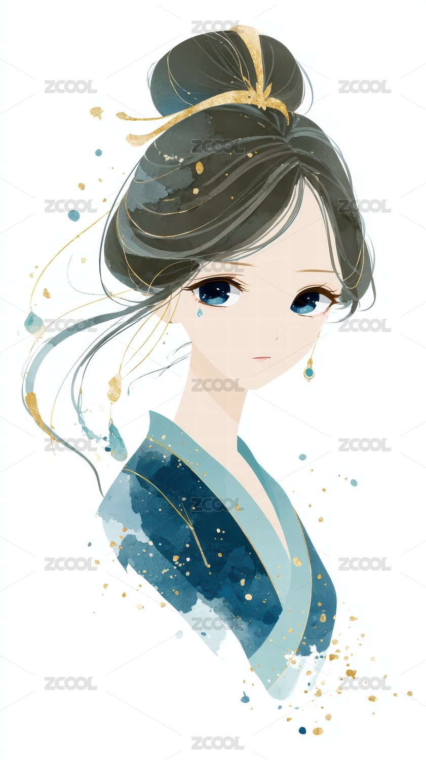 唯美,淡雅色彩,古典美人,水墨画,长发,传统服饰,飘逸服饰,虚幻背景