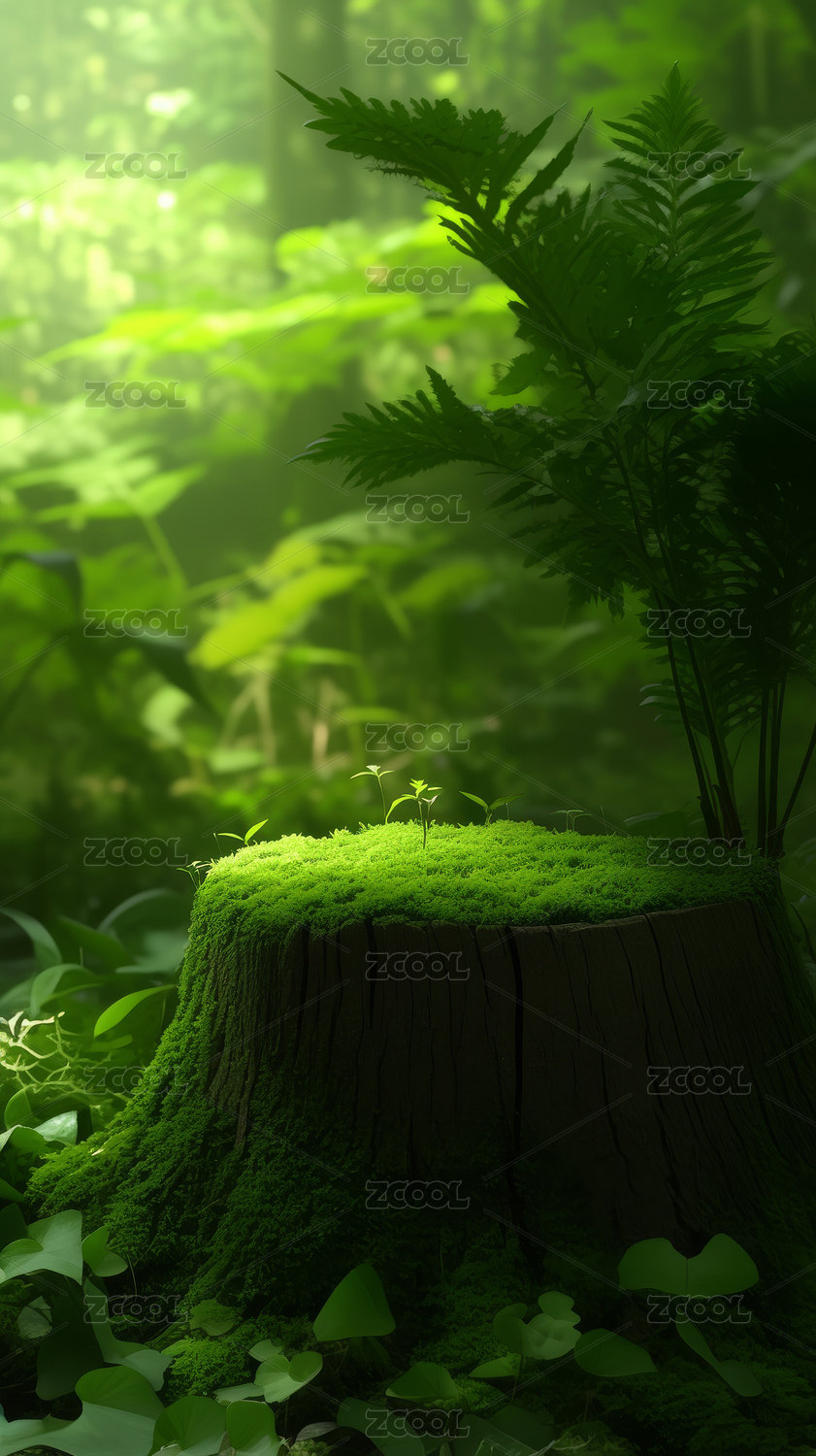 长苔藓毛绒植物石拱门儿童花园3D卡通插画