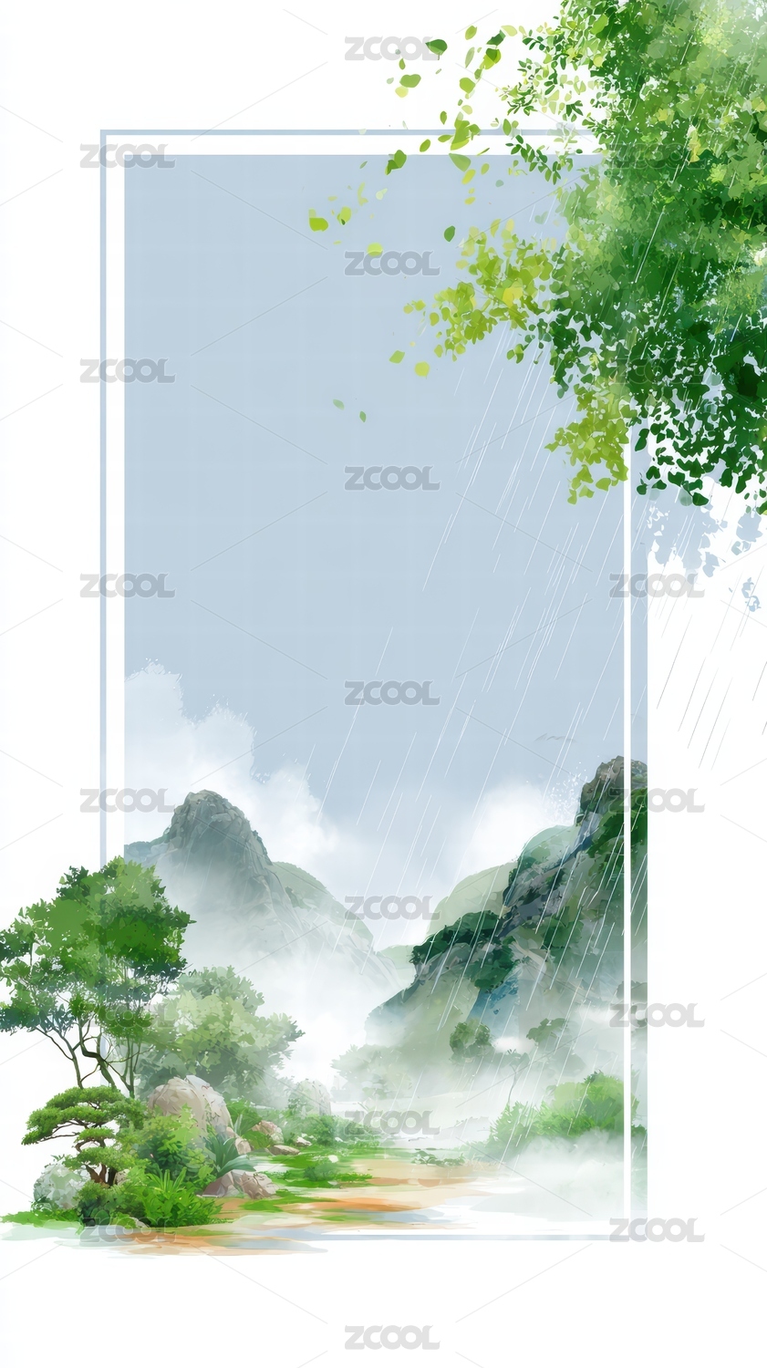 水滴,自然,清新,雨珠,绿叶,山峦,薄雾,枝条
